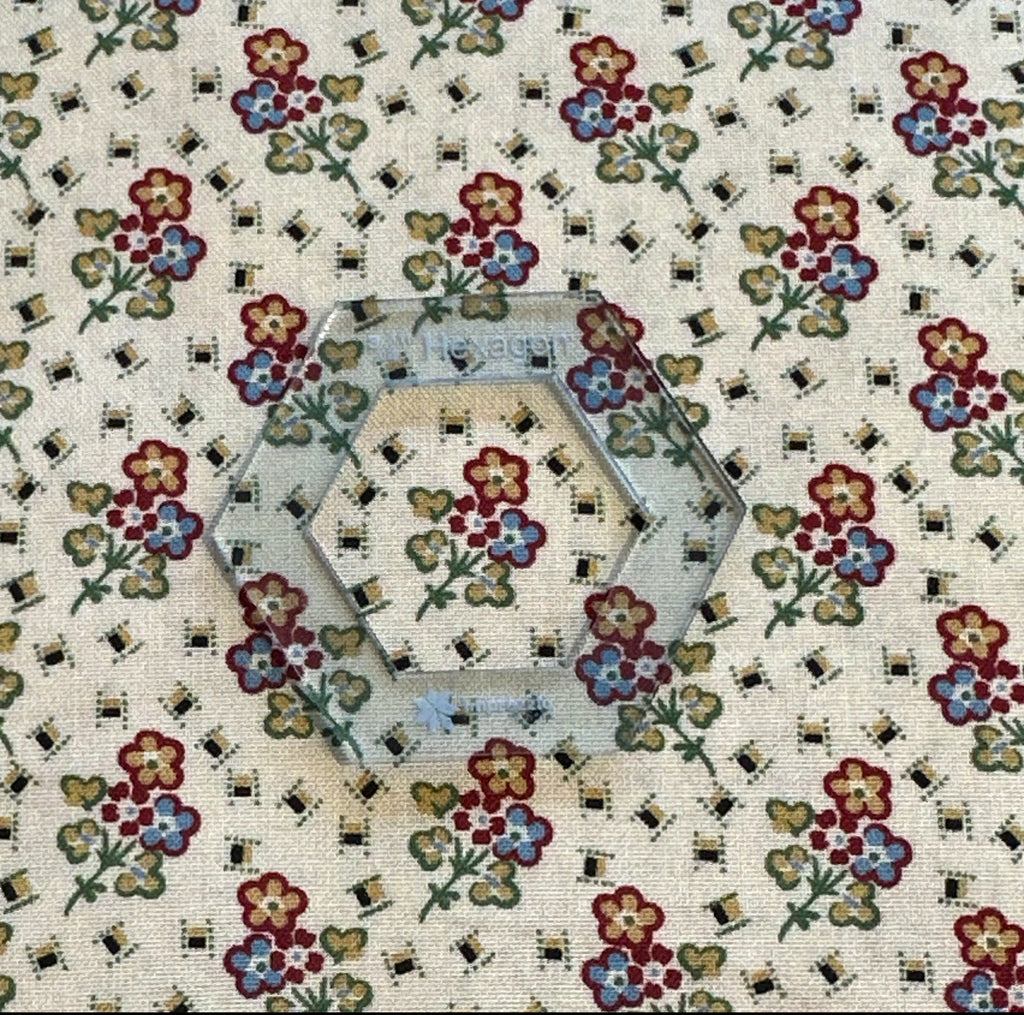 Fabric - Reproduction - (3239) Dusty Pink Honeycomb with Pink, Black & Blue Floral Motif