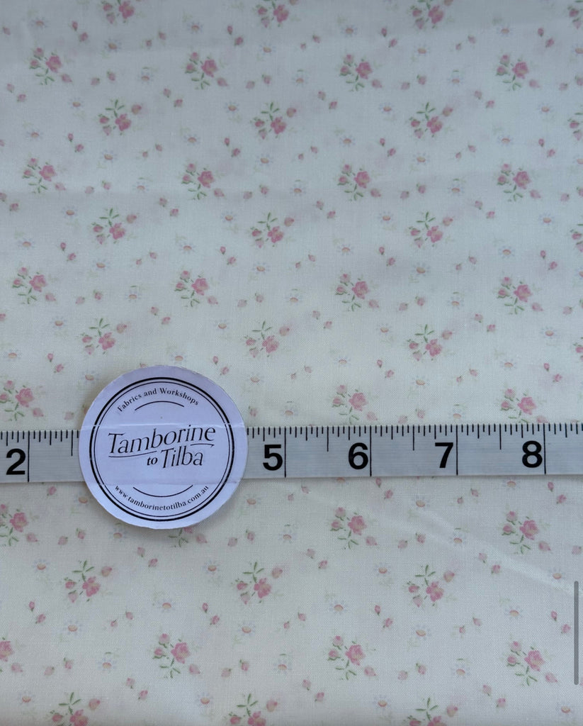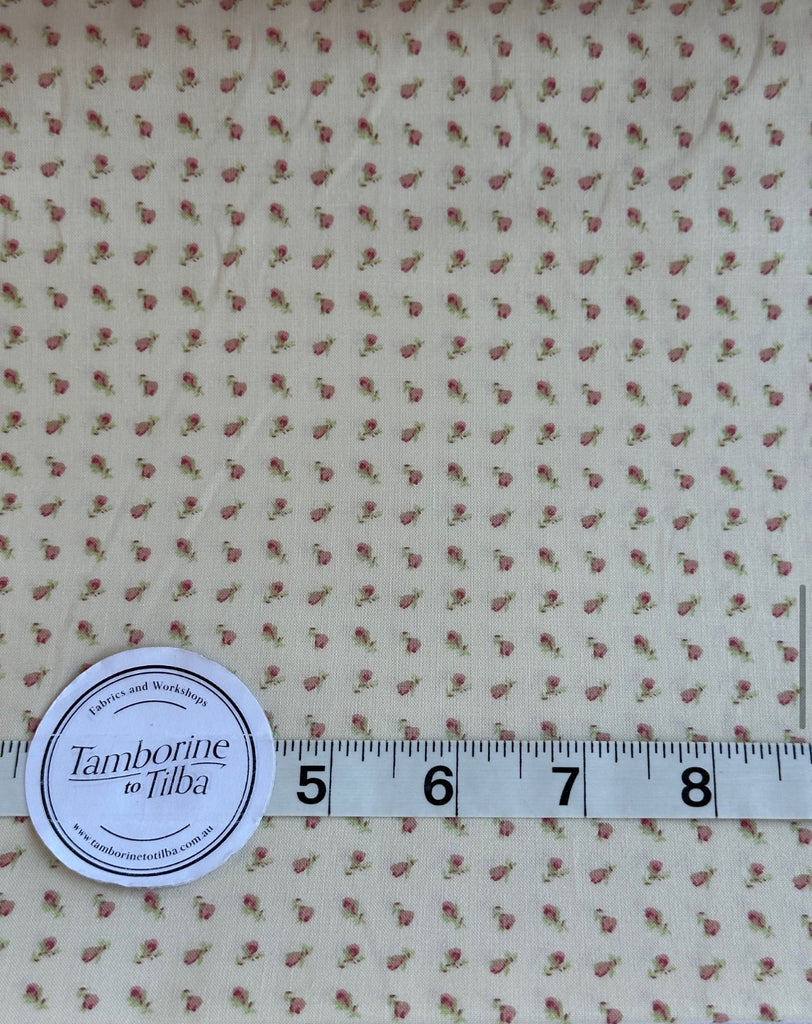 Fabric - Yuwa - (3116) Tiny Pink & Green Roses on Vanilla