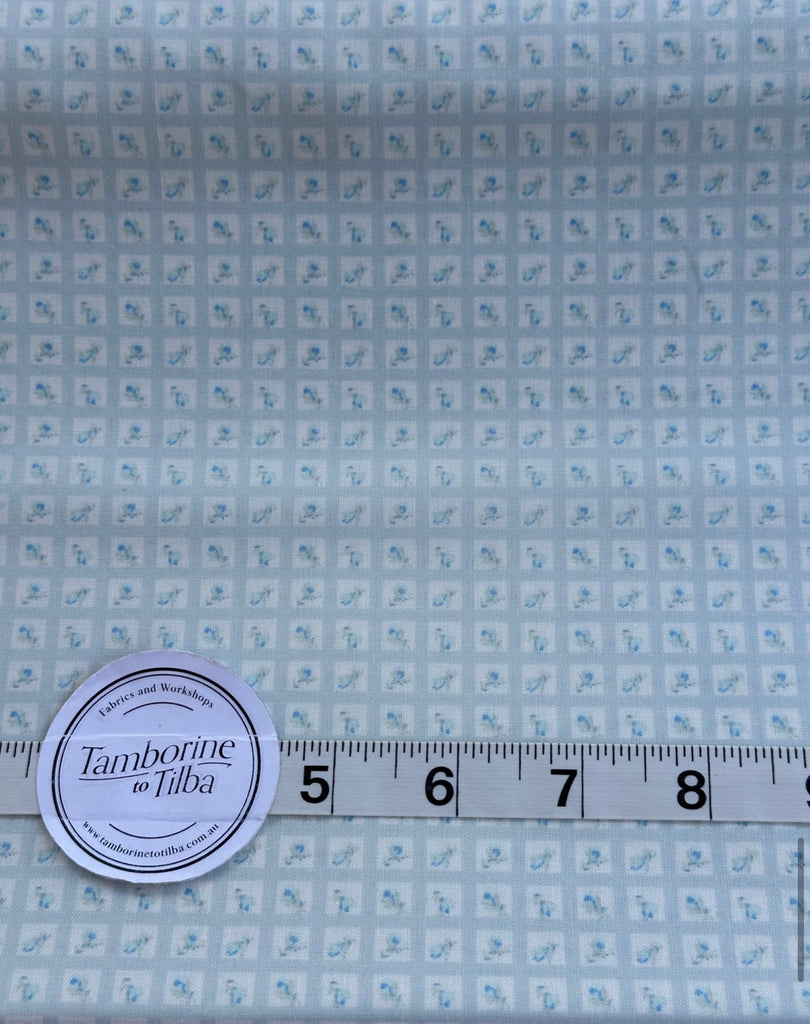 Fabric - Yuwa - (3119) Dove Blue Grey Grid with Tiny Blue Buds