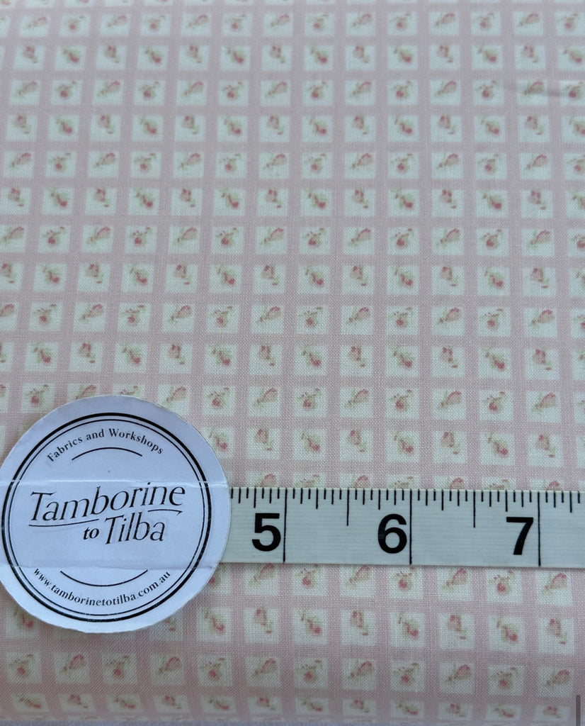 Fabric - Yuwa - (3120) Pink Grid with Tiny Buds on Vanilla