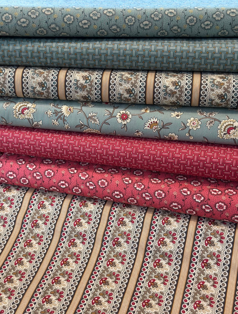 Fabric - Geometric - Blue/Grey with Micro Red Spot