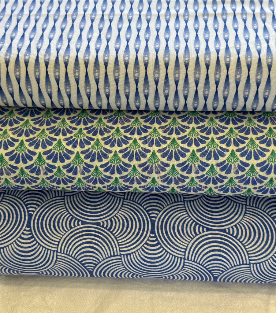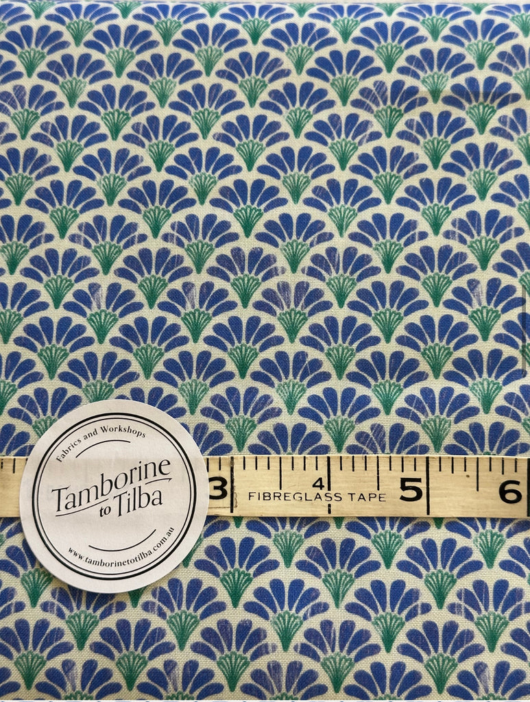Fabric - Yuwa - Geometric - Blue Cartouche with white background