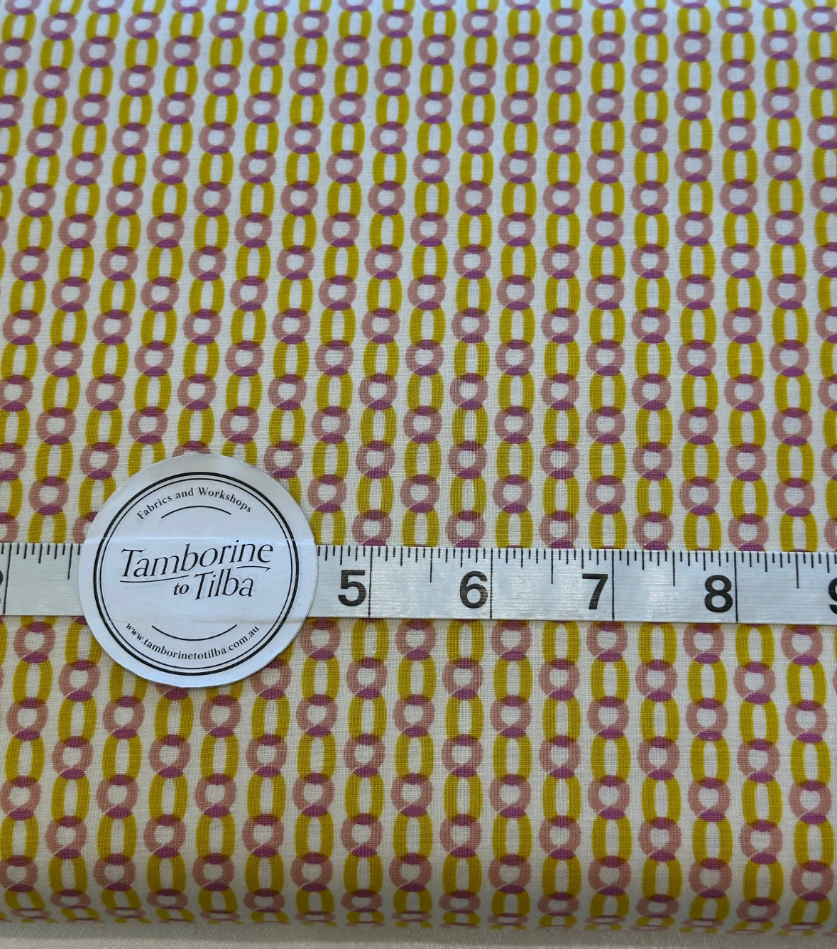 Fabric - Geometric - (2762) Ruby Star Chartreuse & Pink Chains is backordered and will ship as soon as it is back in stock.