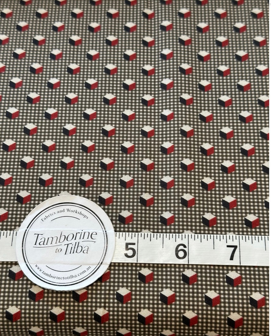 Fabric - Geometric - (3091) Luccello Charcoal, Red & Vanilla Boxes on Brown & Vanilla Check