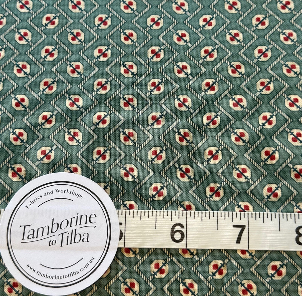 Fabric - Geometric - (3423) Farmer’s Daughter Blu/Green Geometric with Red Detail