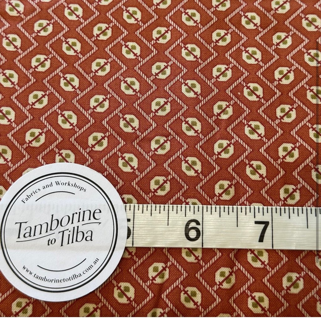 Fabric - Geometric - (3424) Farmer’s Daughter Cinnamon Geometric with Green Detail