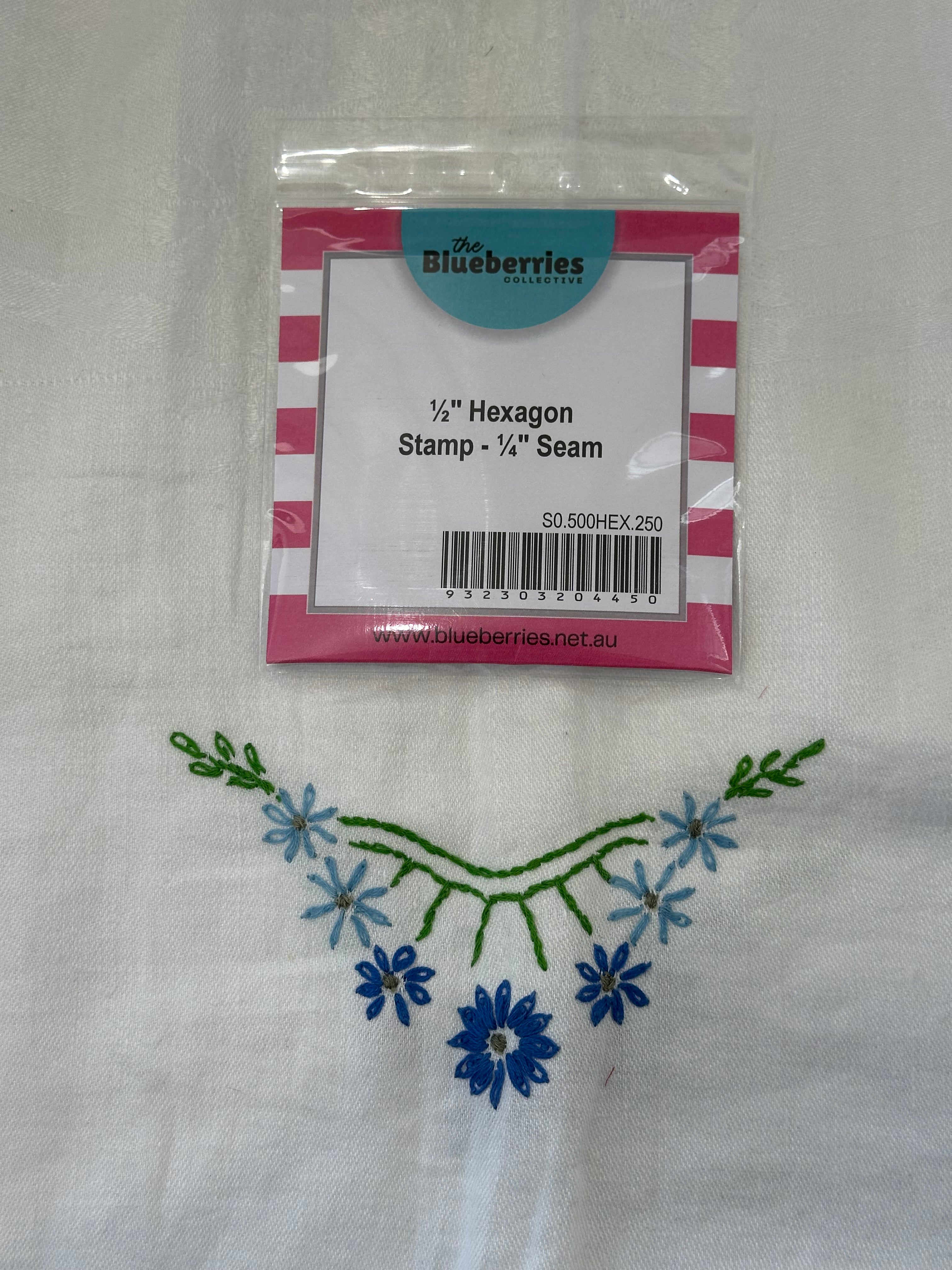 Haberdashery - 1/2 “ hexagon Stamp with 1/4” Seam Allowance is backordered and will ship as soon as it is back in stock.