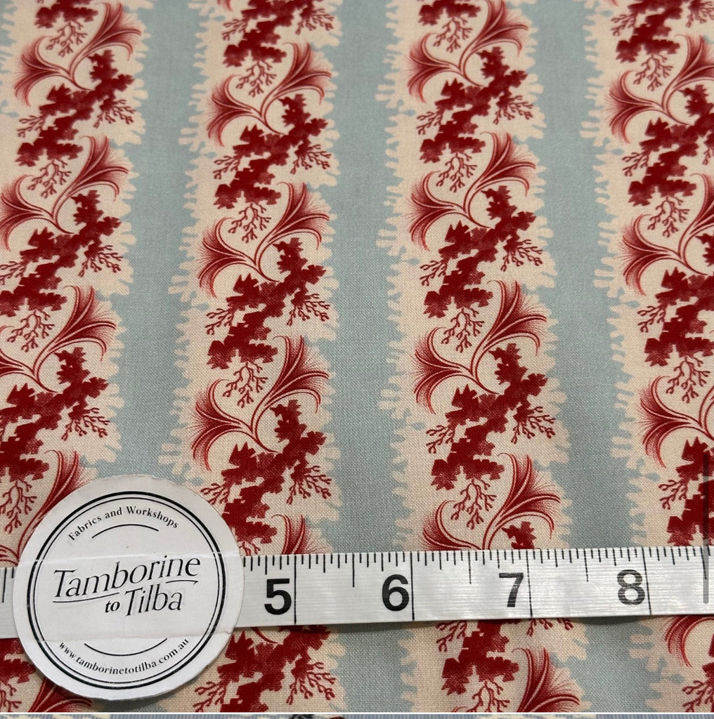 Fabric - Floral - (823) Judy Newman’s Eiderdown Red, Green & Vanilla Lily of the Valley on Duckegg