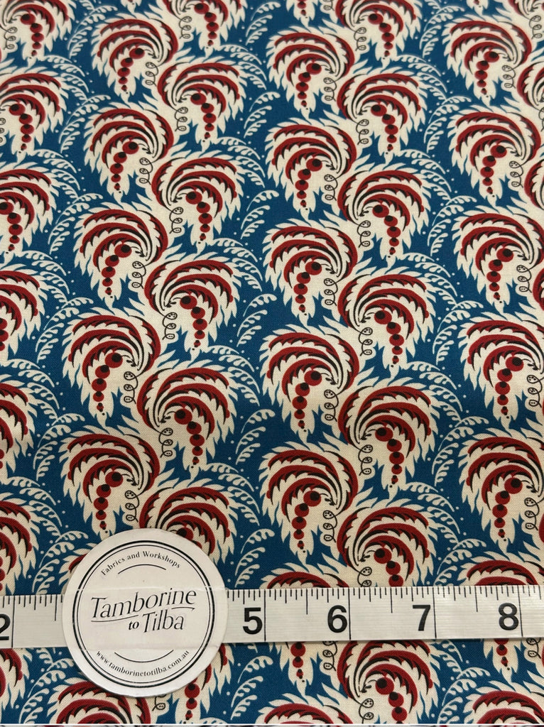 Fabric - Reproduction - (3016) Peasholme Green Adeline Feathered Serpentine on Blue