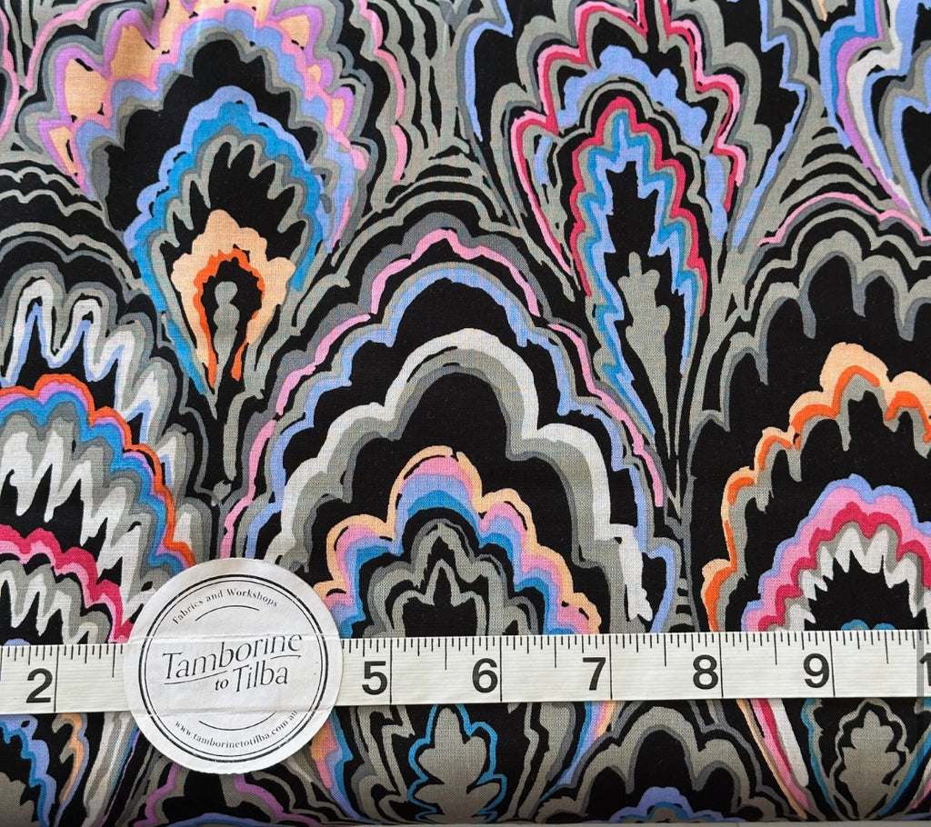 Fabric - Kaffe Collection - Multi Coloured Curvey Floral on Grey & Black