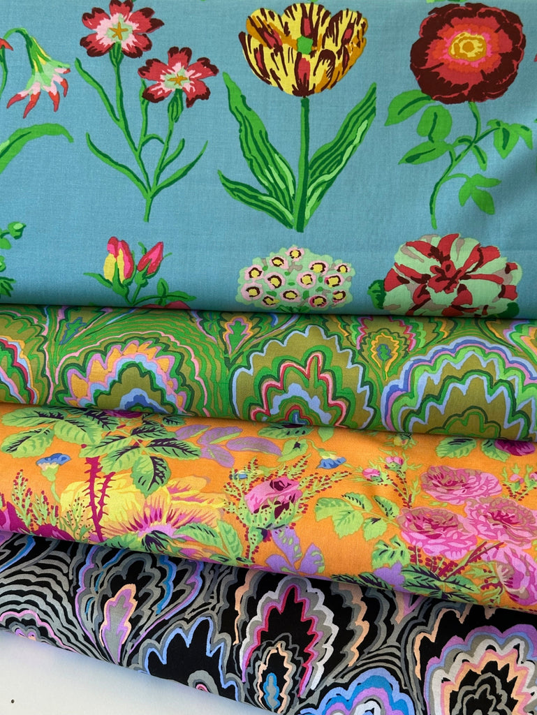 Fabric - Kaffe Collection - Orange, Pinks, Blues & White Floral on Black