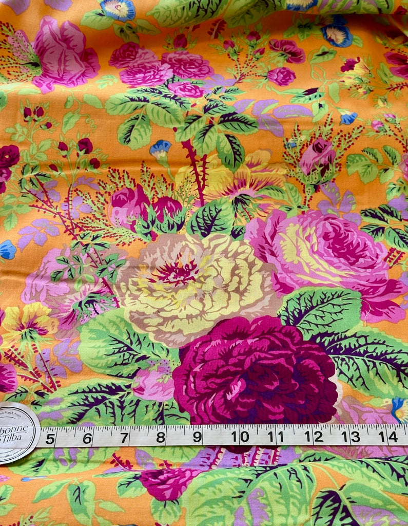 Fabric - Kaffe Collection - Pink & Red Roses on Orange