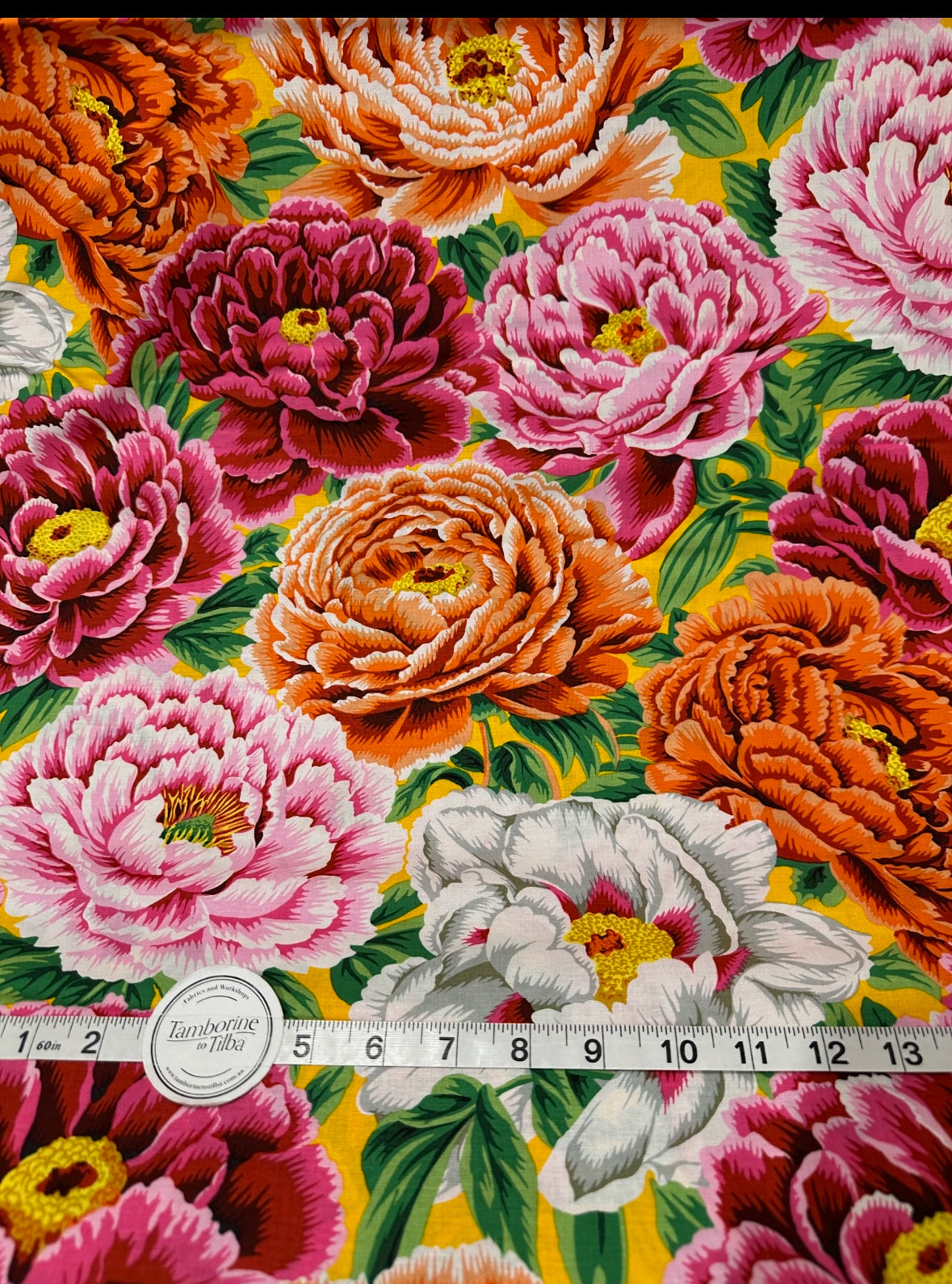 Fabric - Kaffe - (2979) Peony on Rich Yellow is backordered and will ship as soon as it is back in stock.