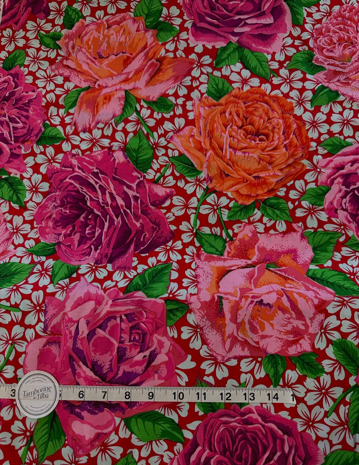 Fabric - Kaffe - (3611) Large Blooms on Red is backordered and will ship as soon as it is back in stock.