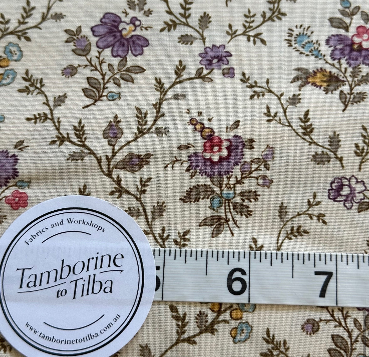 Fabric - Floral - (3371) Delicate Purple Floral with Viney Crosshatch by Max & Louise is backordered and will ship as soon as it is back in stock.