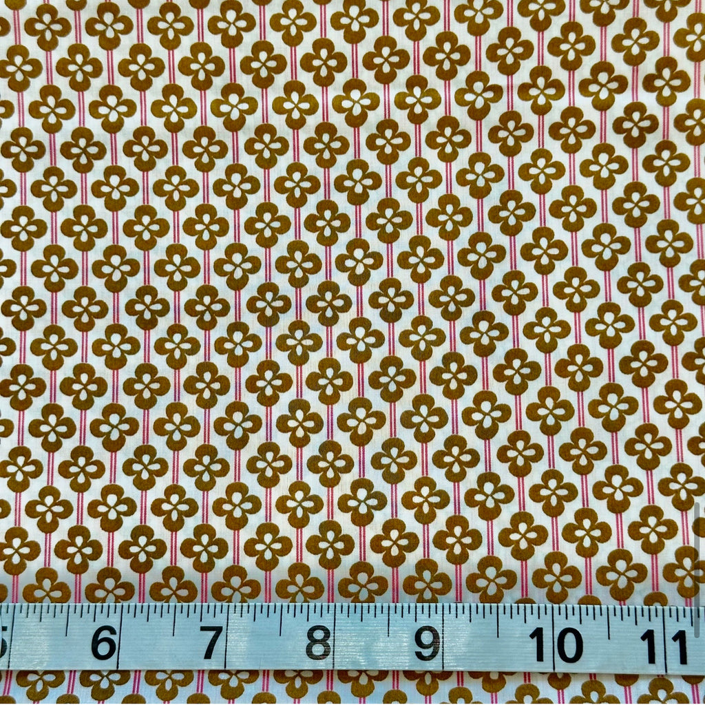 Fabric - Liberty - (3441) Toffee 4 Leaf Clover with Fine Hot Pink Stripe on Vanilla Background