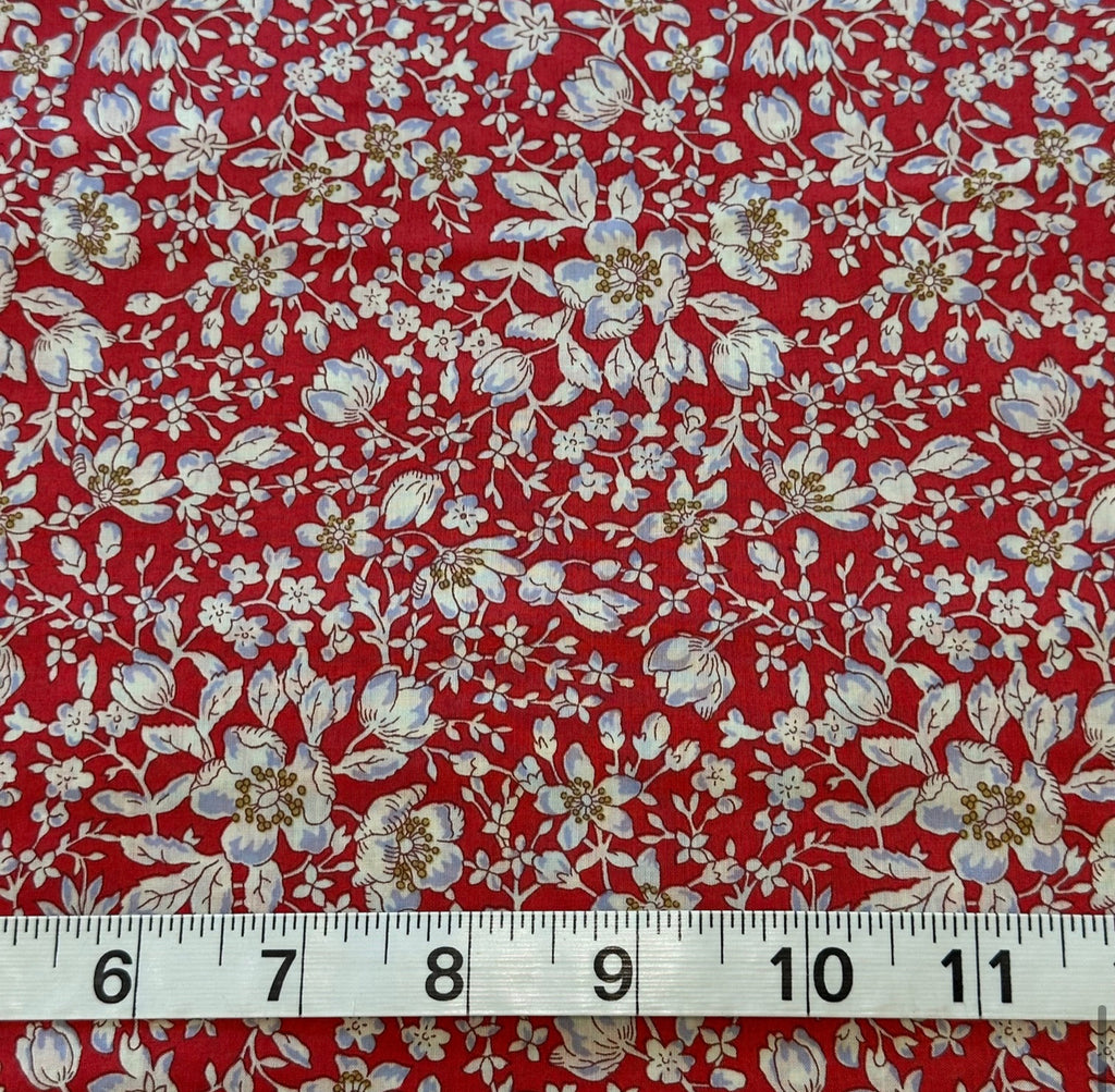 Fabric - Liberty - (3443) Delicate White & Soft Mauve Floral on Red Background