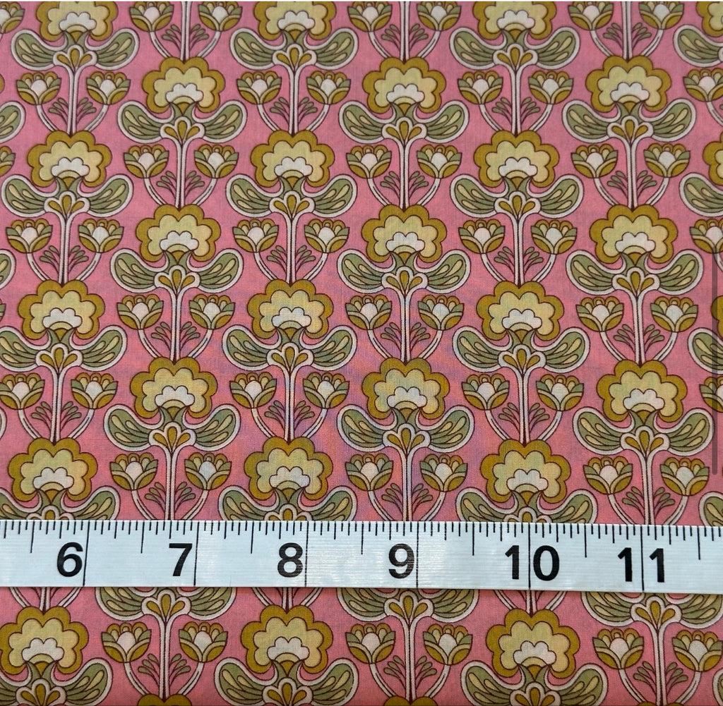 Fabric - Liberty - (3452) Yellow, Gold & Green Stylised Floral on Pink