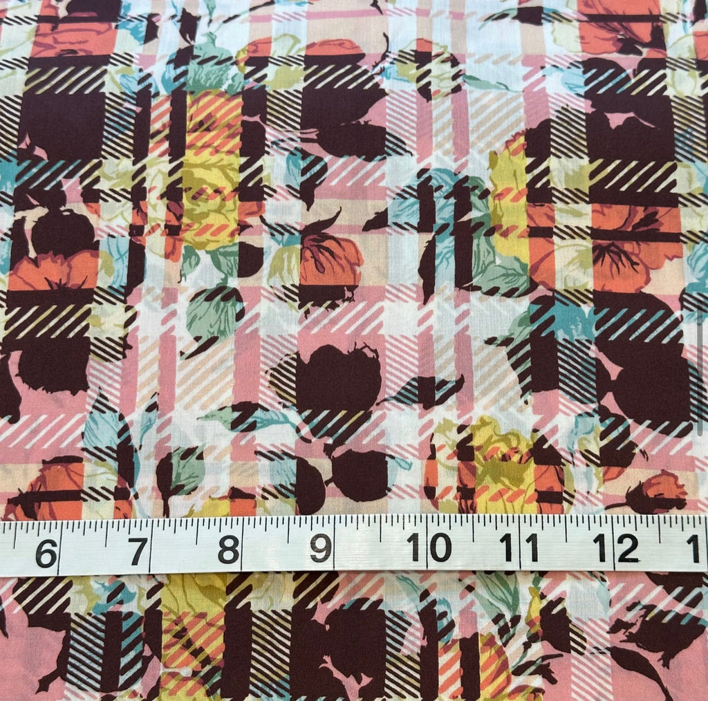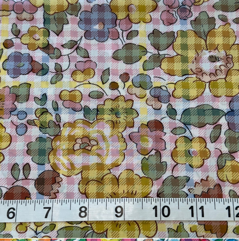 Fabric - Liberty - (3437) Vanilla Plaid on Pink Floral Background