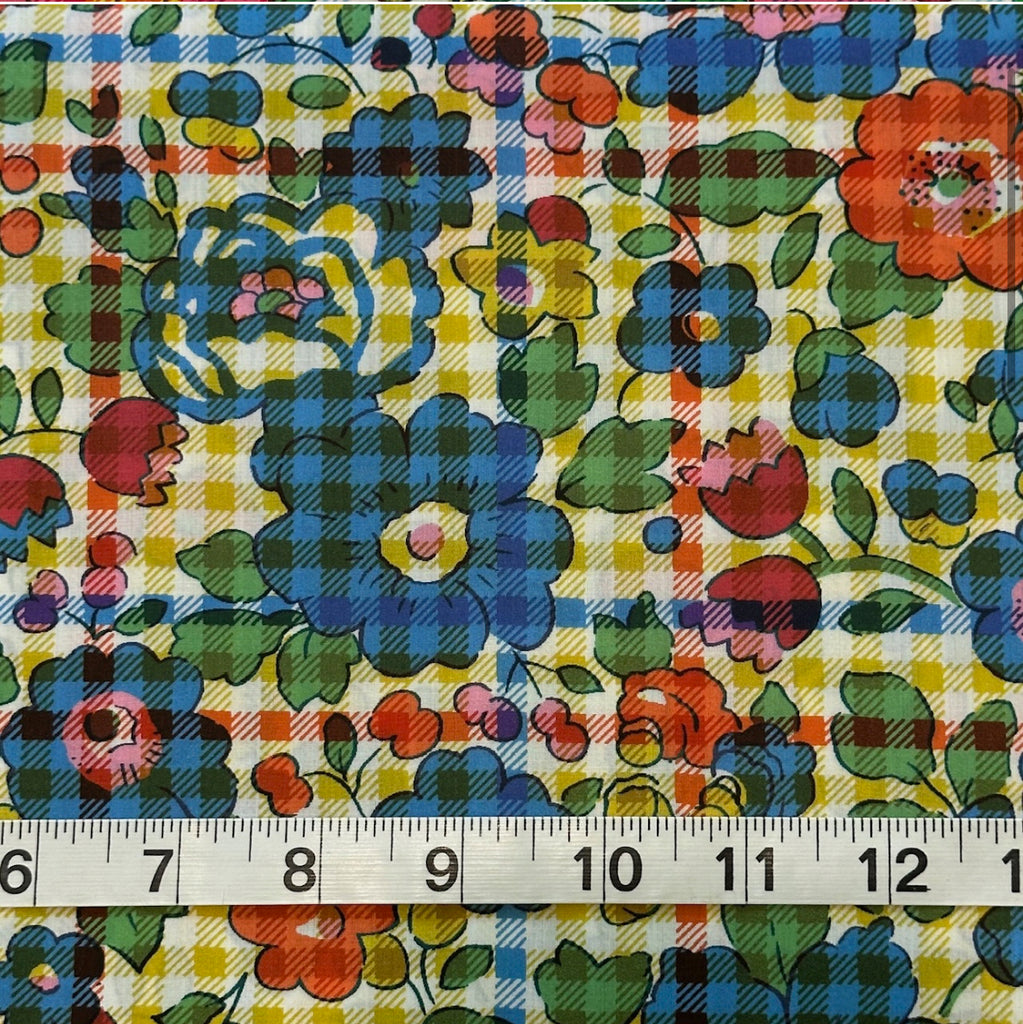 Fabric - Liberty - (3447) Blue, Orange, Gold & Green Floral on Yellow & Vanilla Plaid