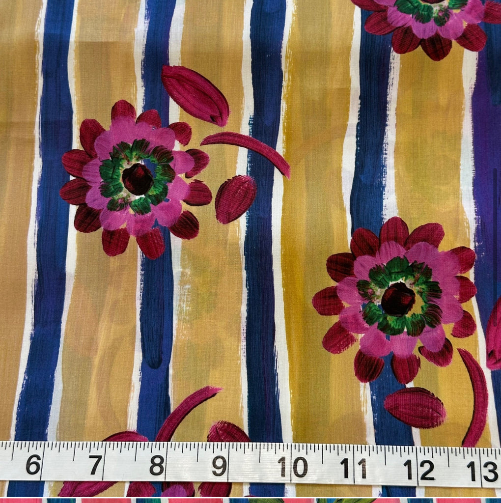 Fabric - Liberty - (3449) Pink, Red & Green Flowers on Navy, White & Gold Stripes