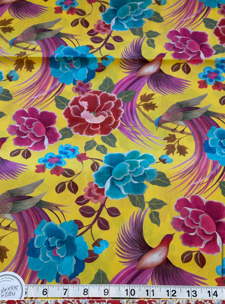 Fabric - Liberty - (3442) Beautiful Magenta Birds on Bright Yellow Background