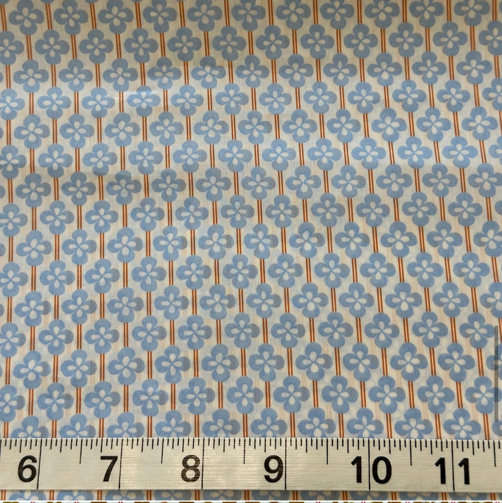 Fabric - Liberty - (3440) Blue 4 Leaf Clover with Fine Toffee Stripe on Vanilla Background