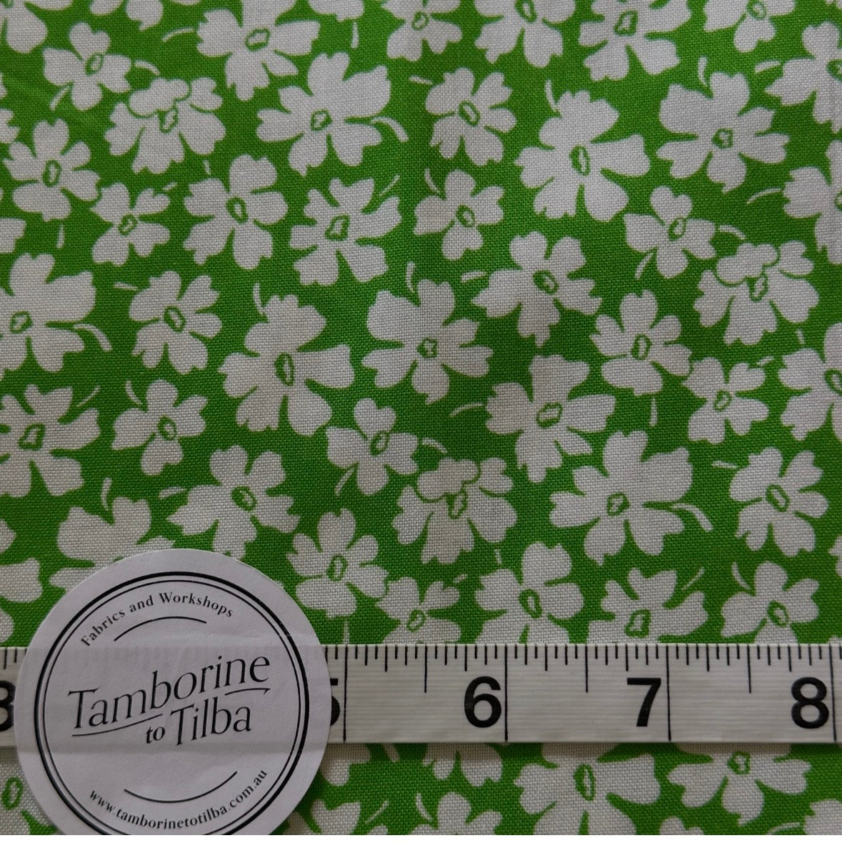 Fabric - Floral - (3277A) 40’s Fresh White Floral on Green