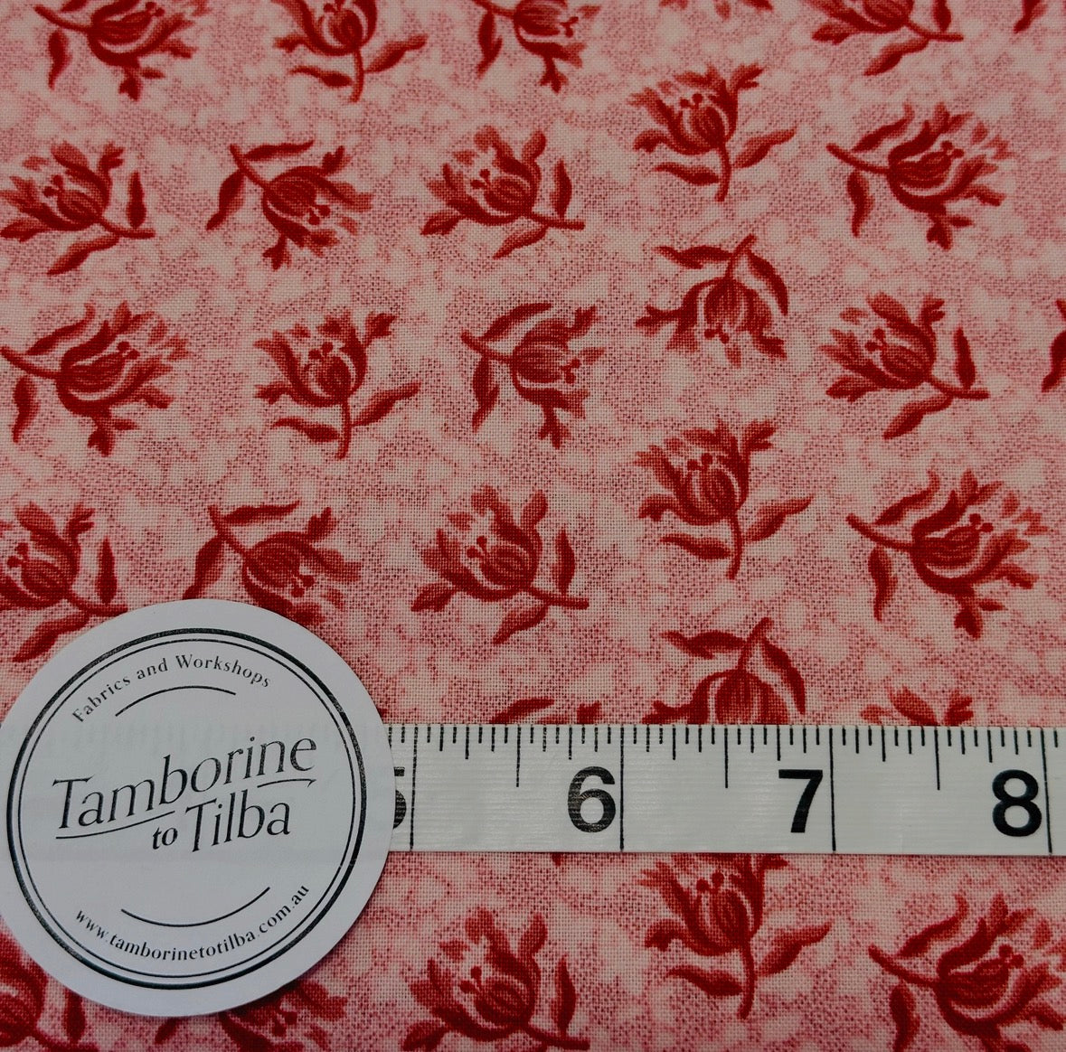Fabric - Floral - (3291A) Red Buds on Mottled Pink
