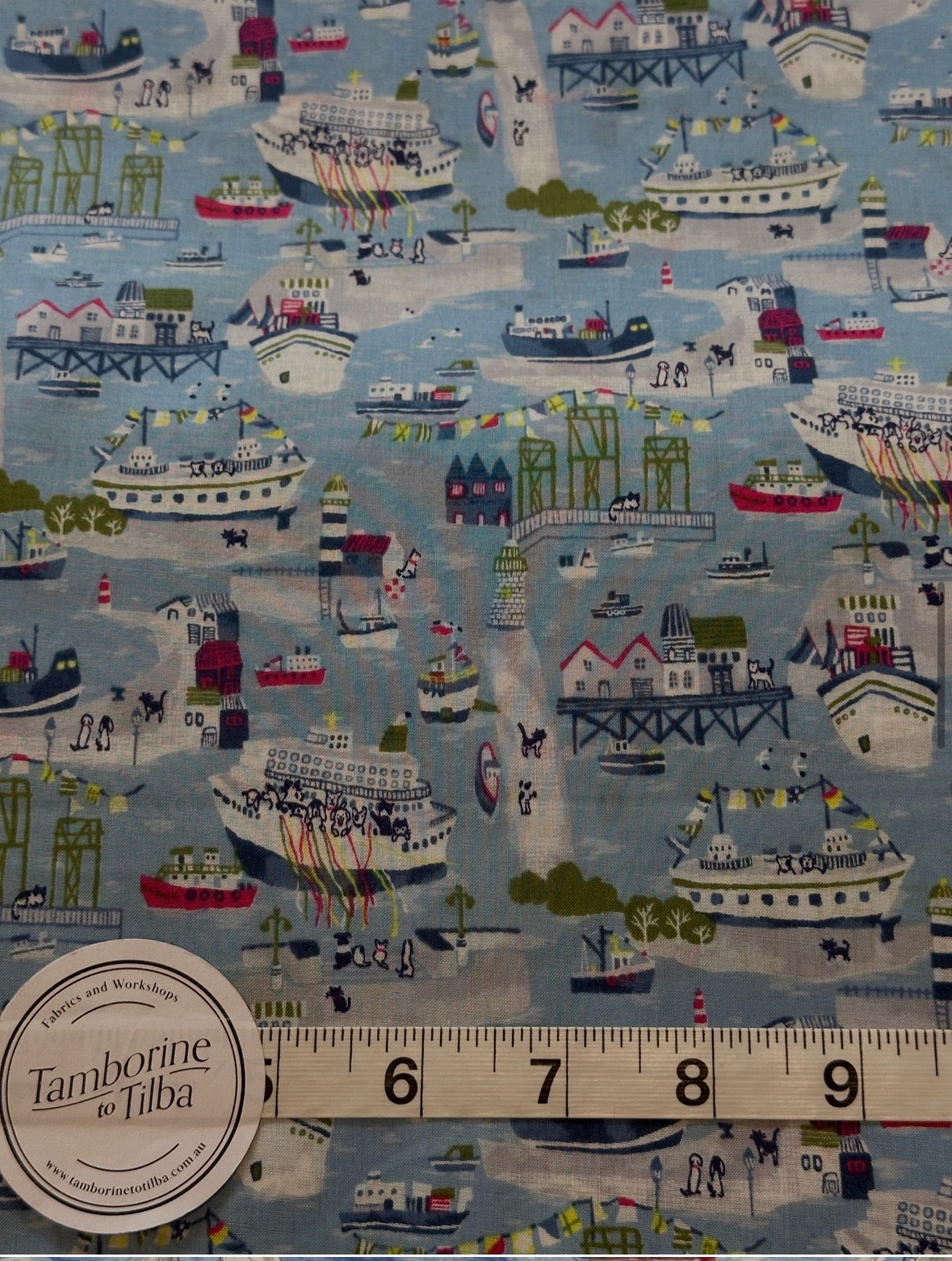 Fabric - Conversation - (3504) Small Scale Sweet Nautical Print on Blue