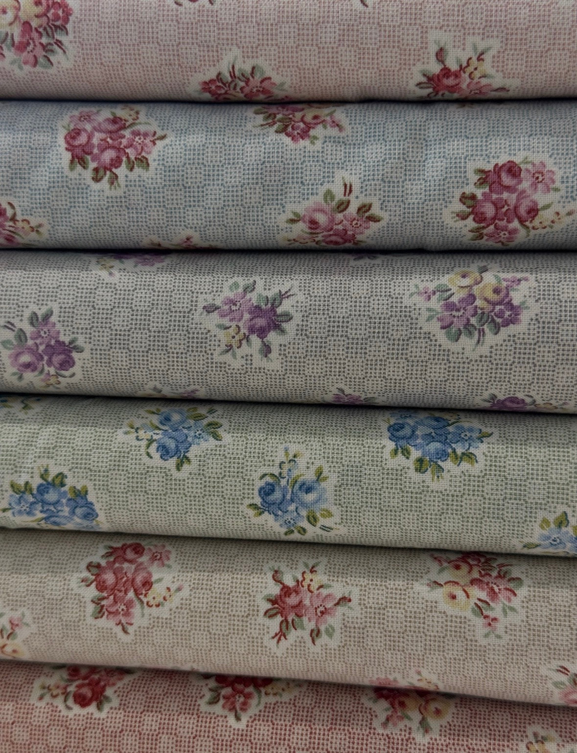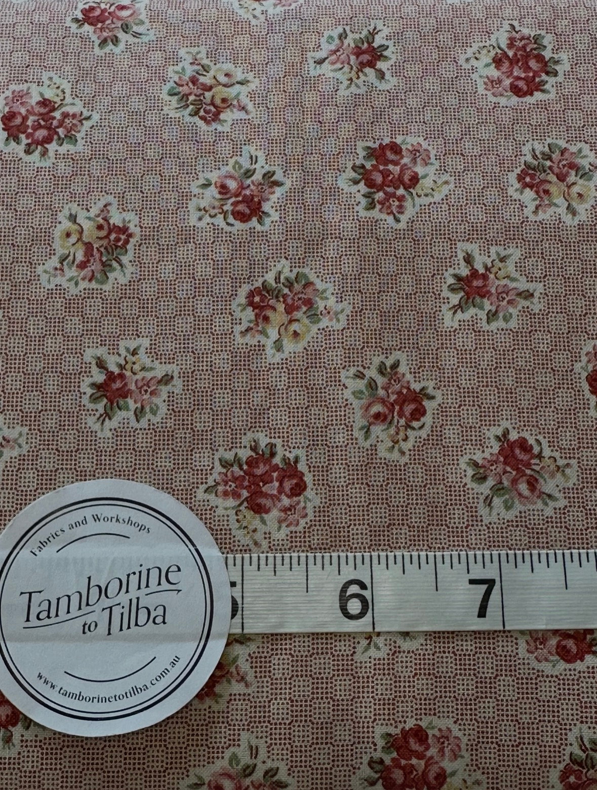 Fabric - Floral - (3531) Antique Pink Floral on Rose Pink Spotty Checked Background