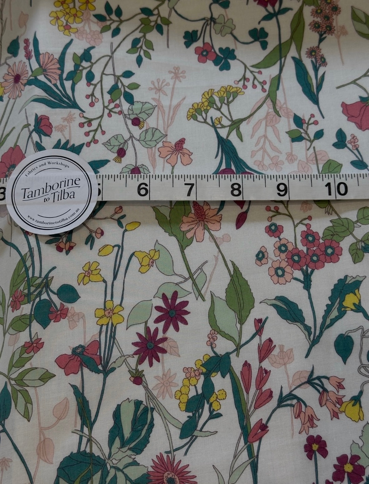 Fabric - Floral - (3533) Pretty Multicoloured Floral Sprigs on Vanilla is backordered and will ship as soon as it is back in stock.
