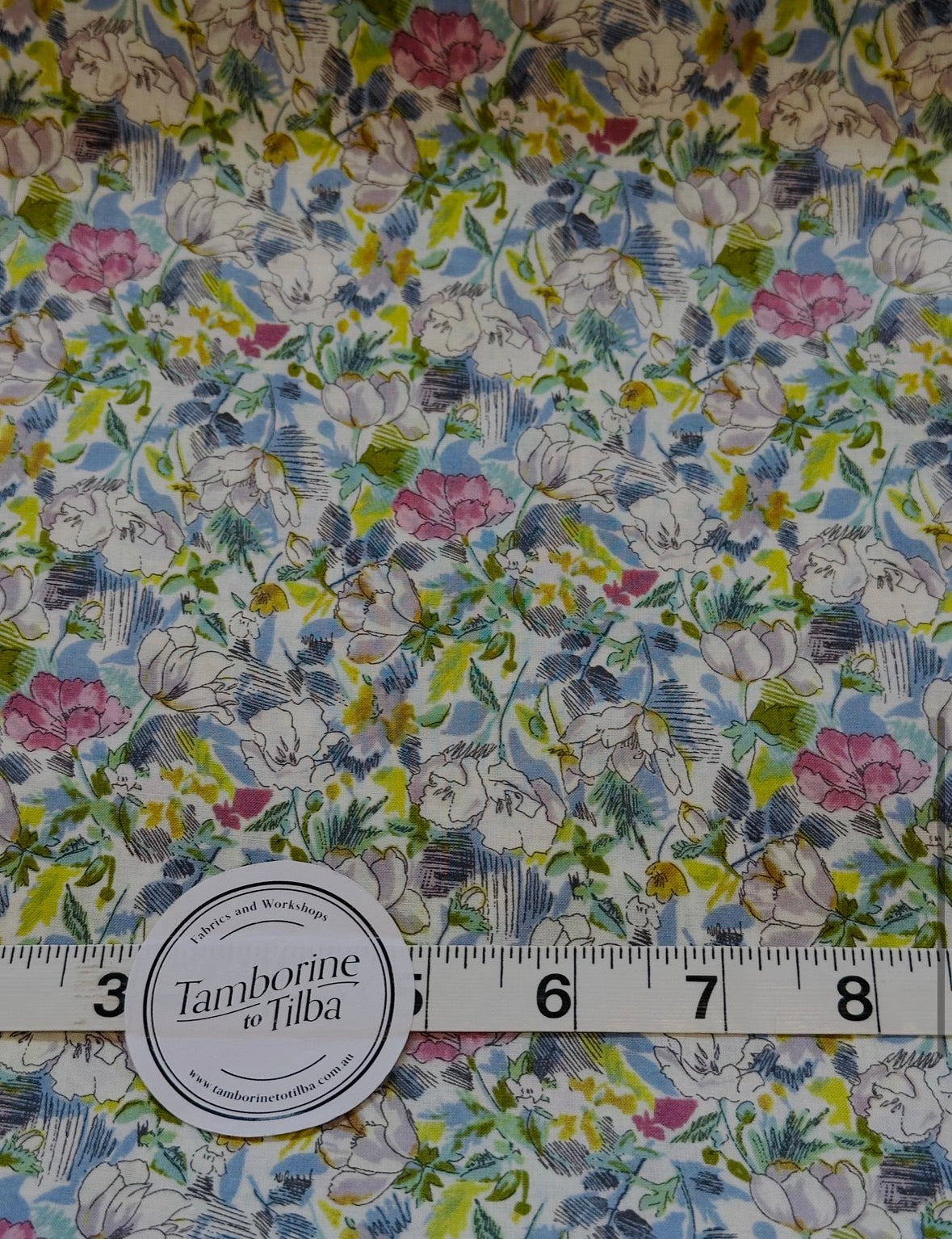 Fabric - Floral - (3535) Pretty Blue, Pink & Chartreuse on Vanilla is backordered and will ship as soon as it is back in stock.