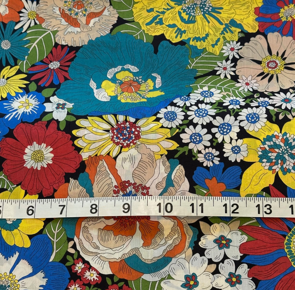 Fabric - Liberty - (3433) Multicoloured Floral on Black is backordered and will ship as soon as it is back in stock.