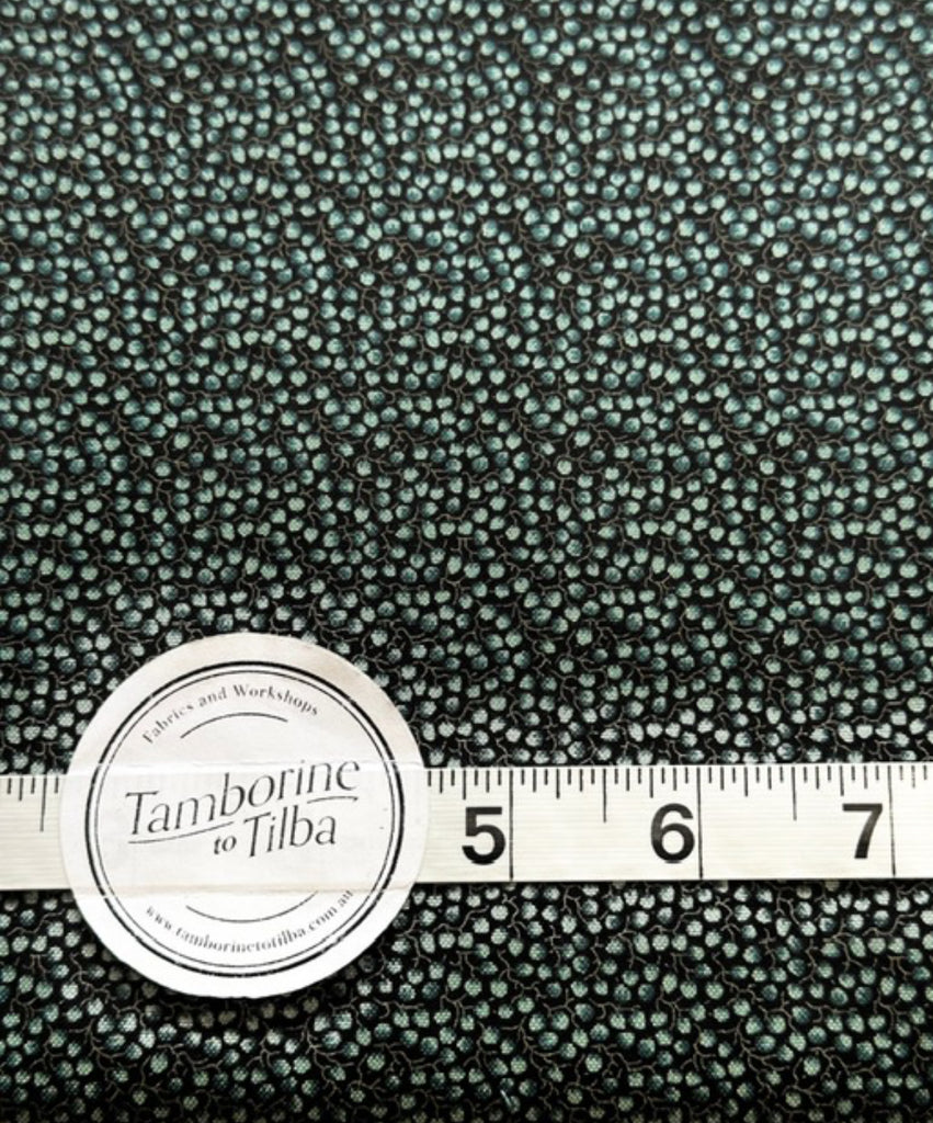Fabric - Reproduction - (2247) Teal & Blue Berries on Inky Black Background