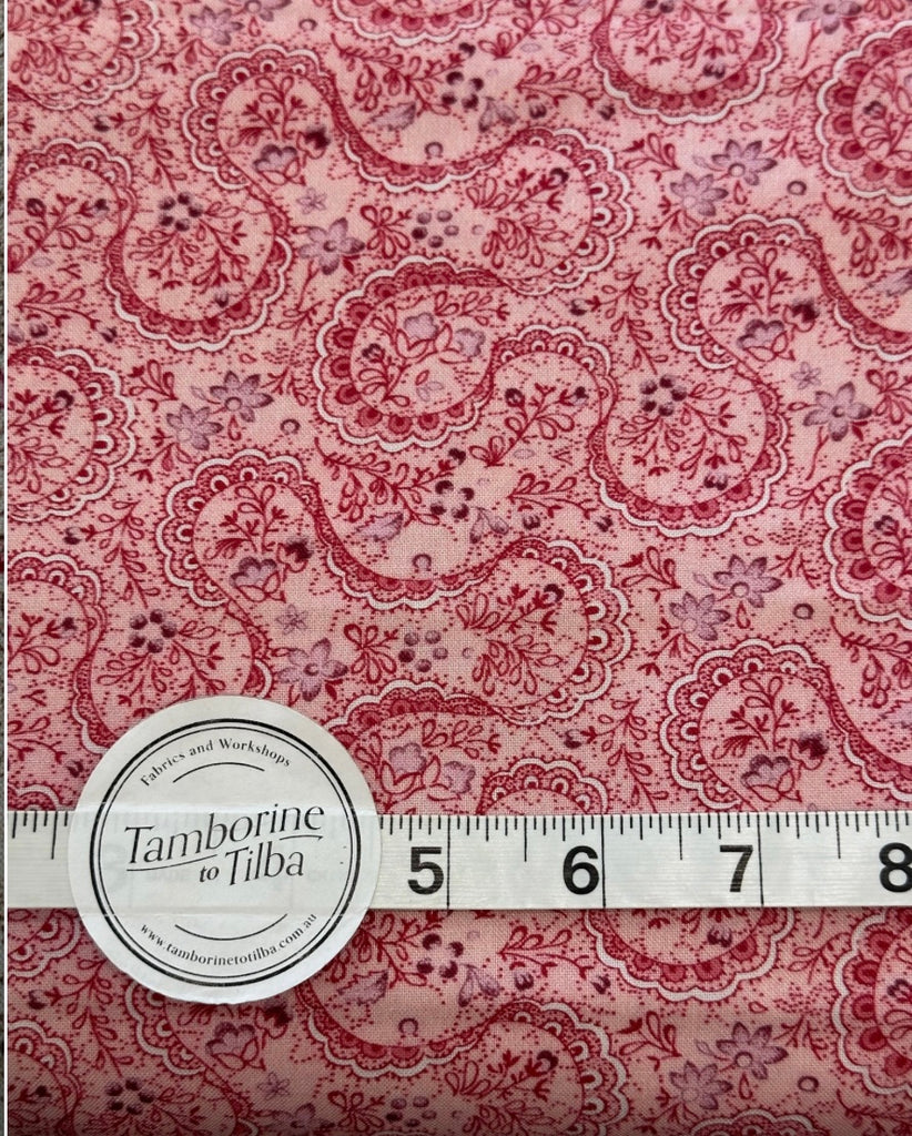 Fabric - Reproduction - (2396) Pink & Raspberry on Dusty Pink