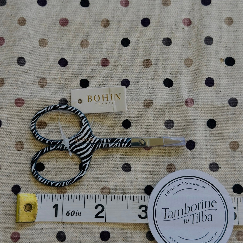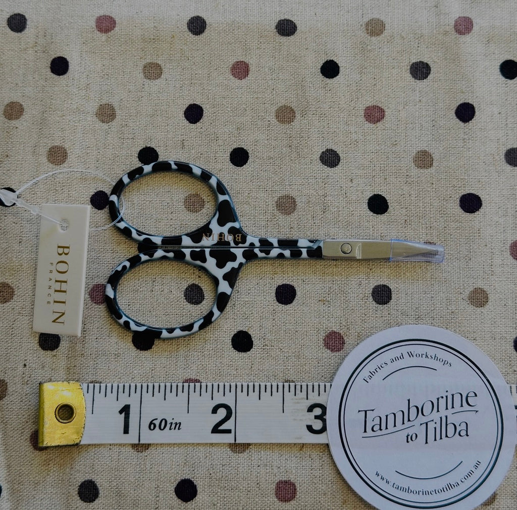Haberdashery - Bohin 4” Scissors in Black & White Cow Hide