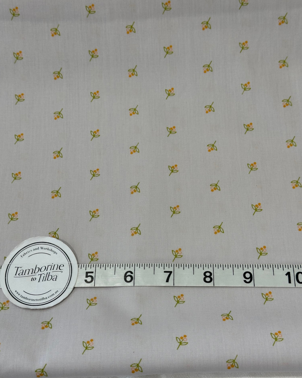 Fabric - Shirting - (3002) Delicate Green & Orange Sprigs on Oyster Background is backordered and will ship as soon as it is back in stock.