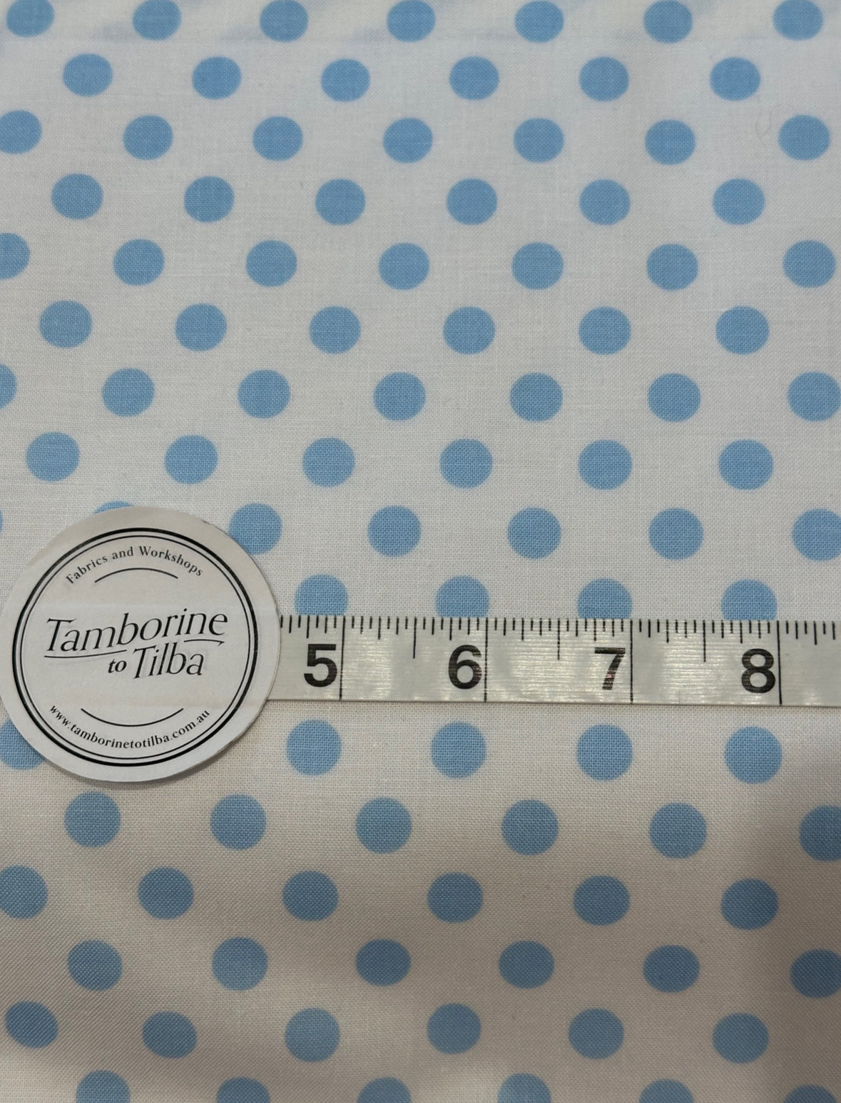 Fabric - Spots - (2652) Sky Blue Spot on Vanilla is backordered and will ship as soon as it is back in stock.