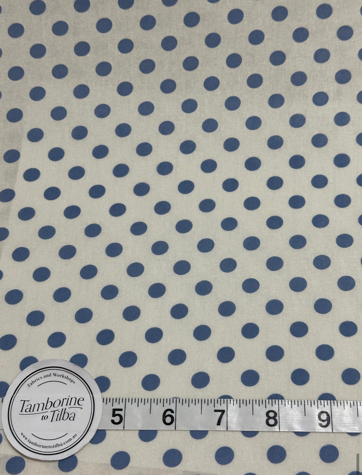 Fabric - Spots - (2694) Cornflower Blue Spots on Vanilla is backordered and will ship as soon as it is back in stock.