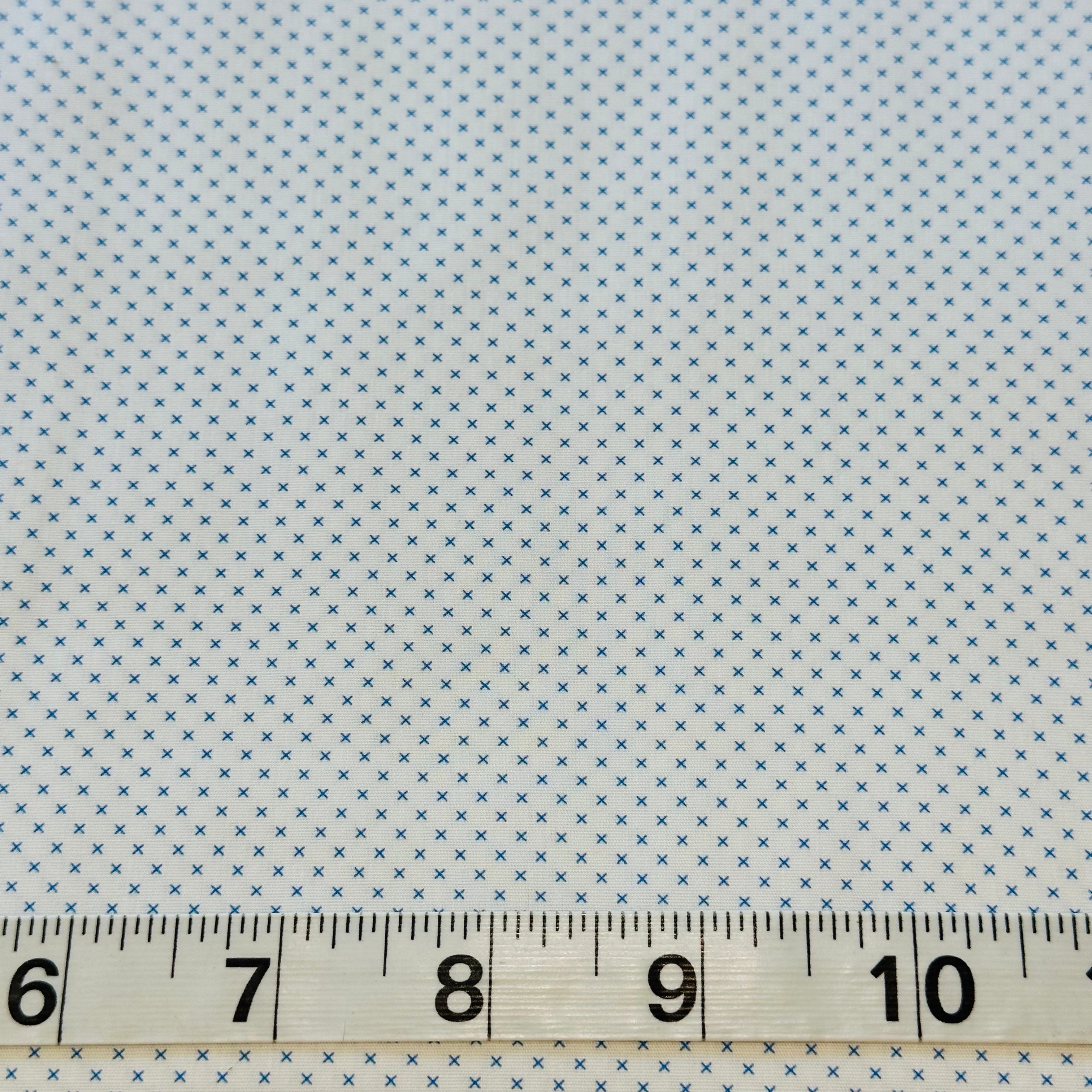Fabric - Spots - (3251) Tiny Blue Crosses on Vanilla is backordered and will ship as soon as it is back in stock.