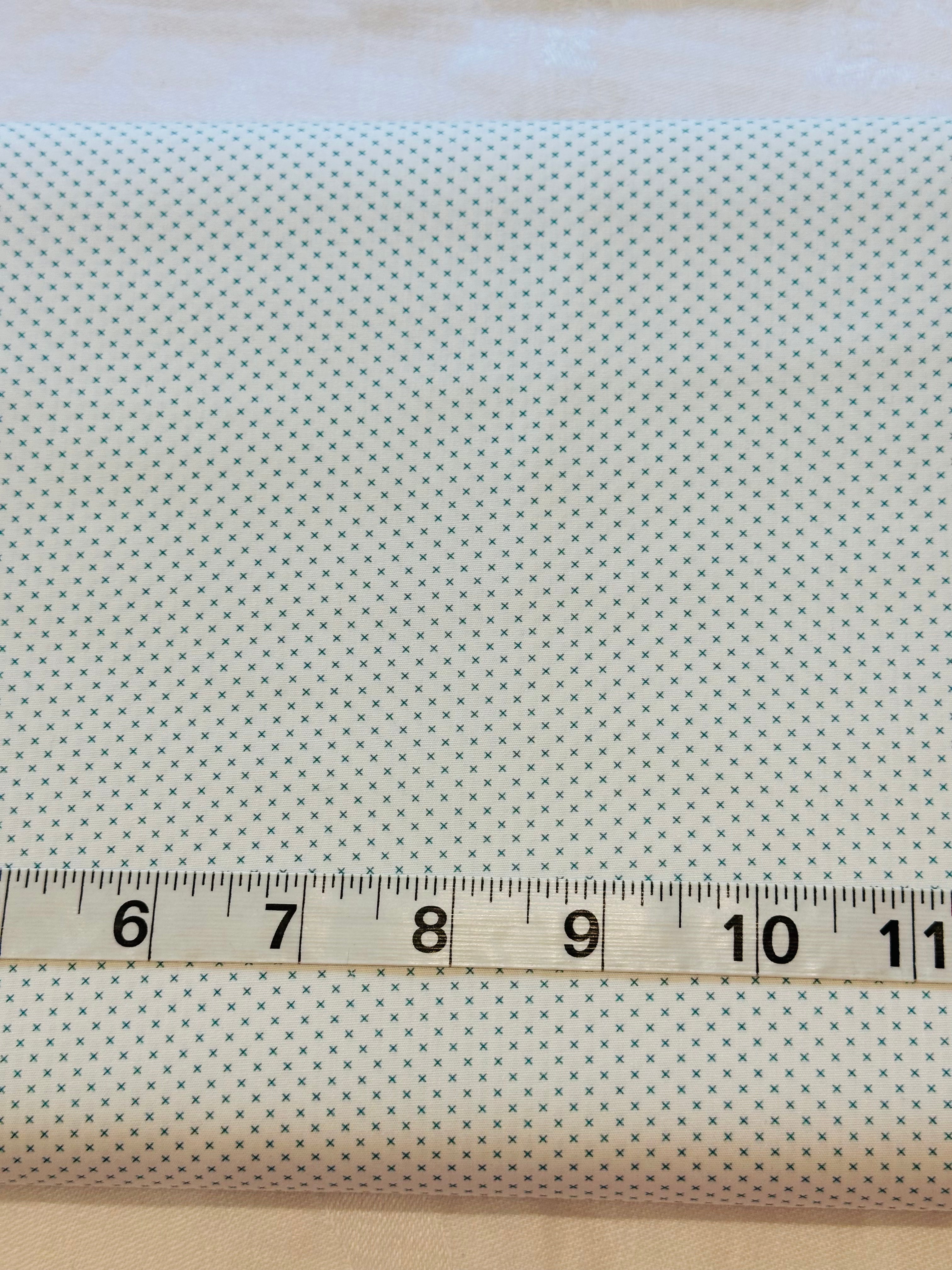 Fabric - Spots - (3255) Tiny Teal Crosses on Vanilla is backordered and will ship as soon as it is back in stock.