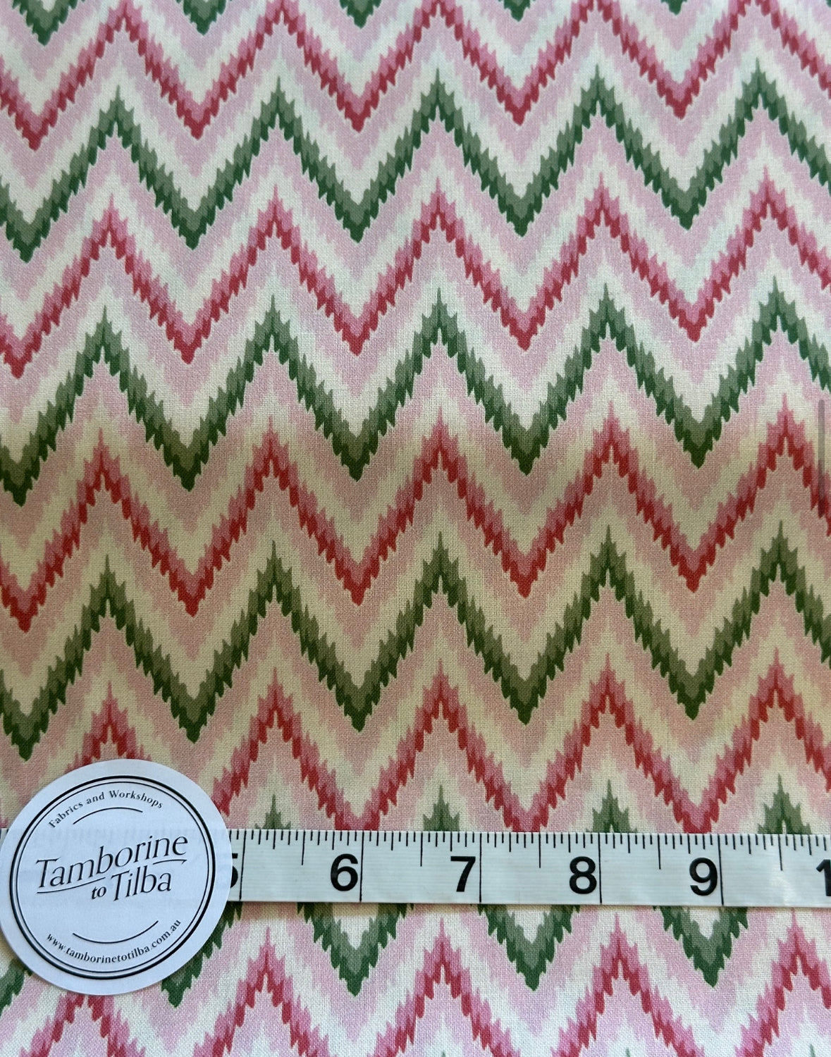 Fabric - Stripes - (3357) Pink & Green Chevron on Vanilla