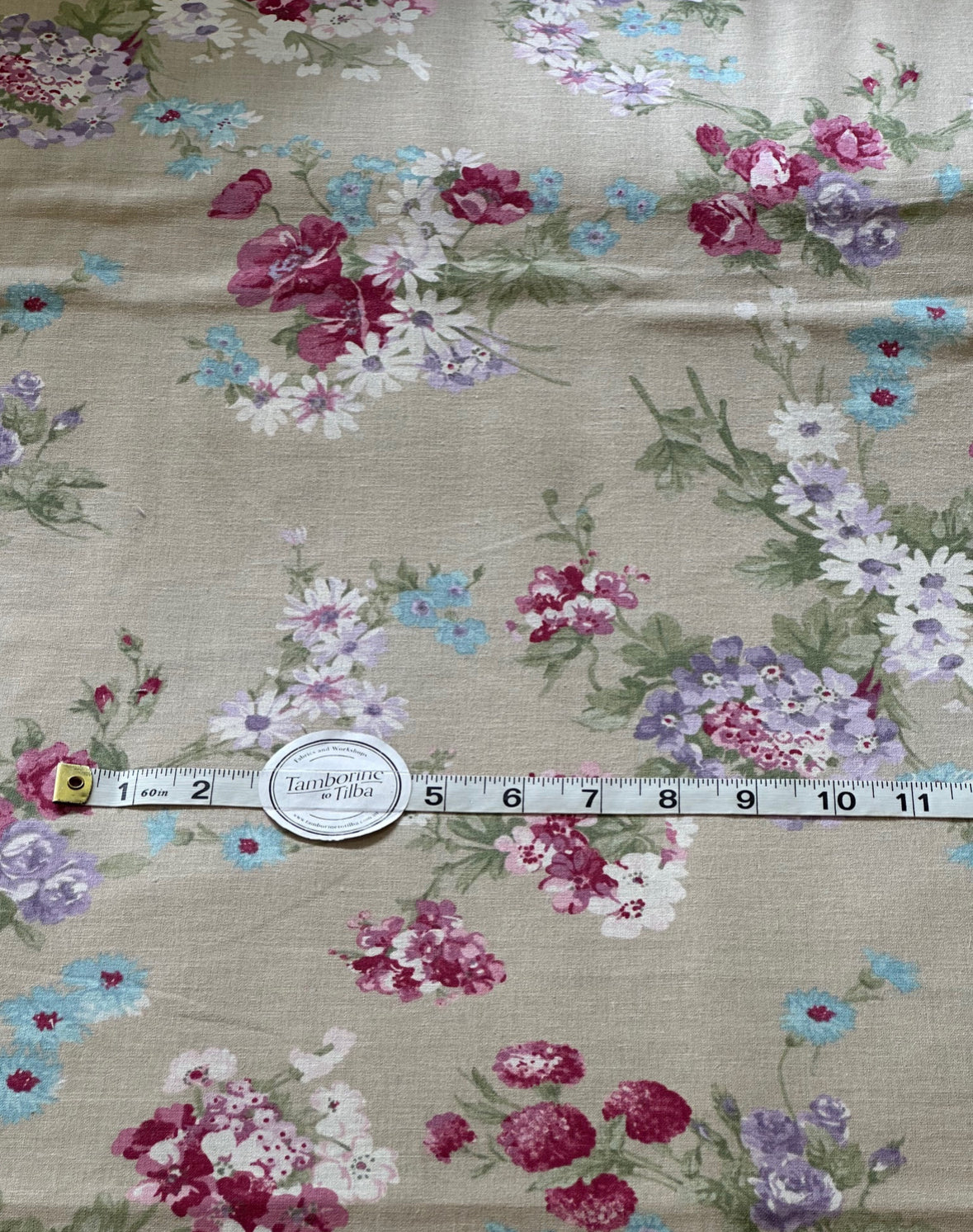 Fabric - Yuwa - (2421) Beautiful Fine Linen Floral on Biscuit is backordered and will ship as soon as it is back in stock.