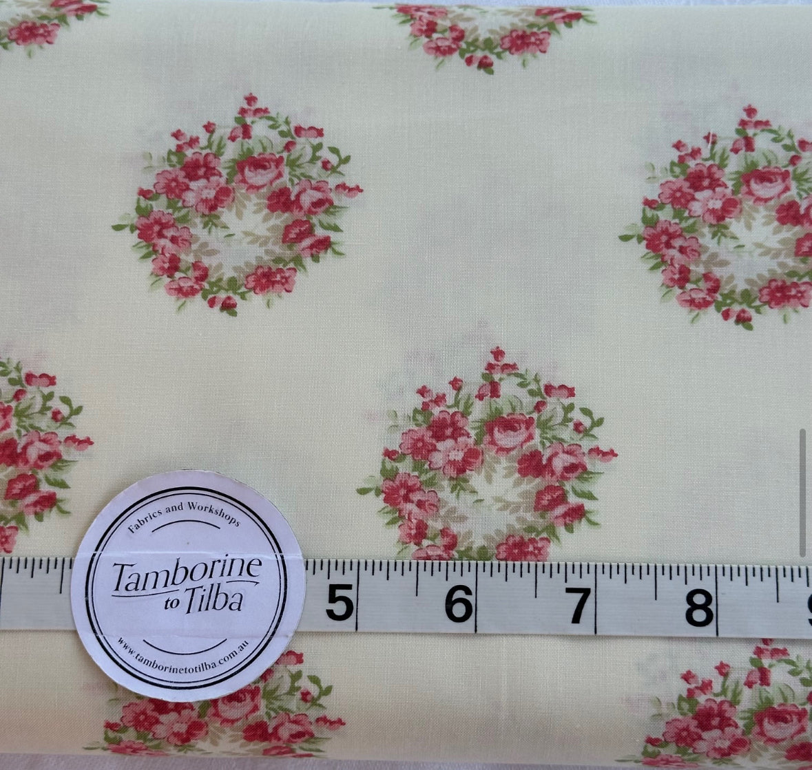 Fabric - Yuwa - (3130) Pink, Coral & Green Garlands on Vanilla is backordered and will ship as soon as it is back in stock.