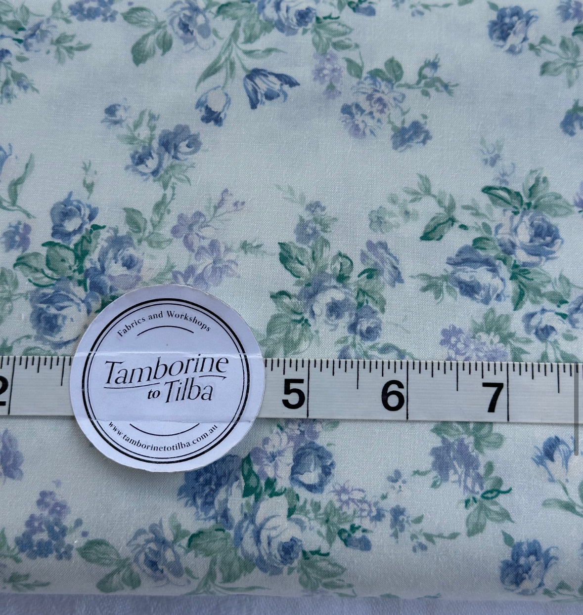 Fabric - Yuwa - (3142) Blue/Jacaranda & Green Floral on Soft Blue/Green Background is backordered and will ship as soon as it is back in stock.