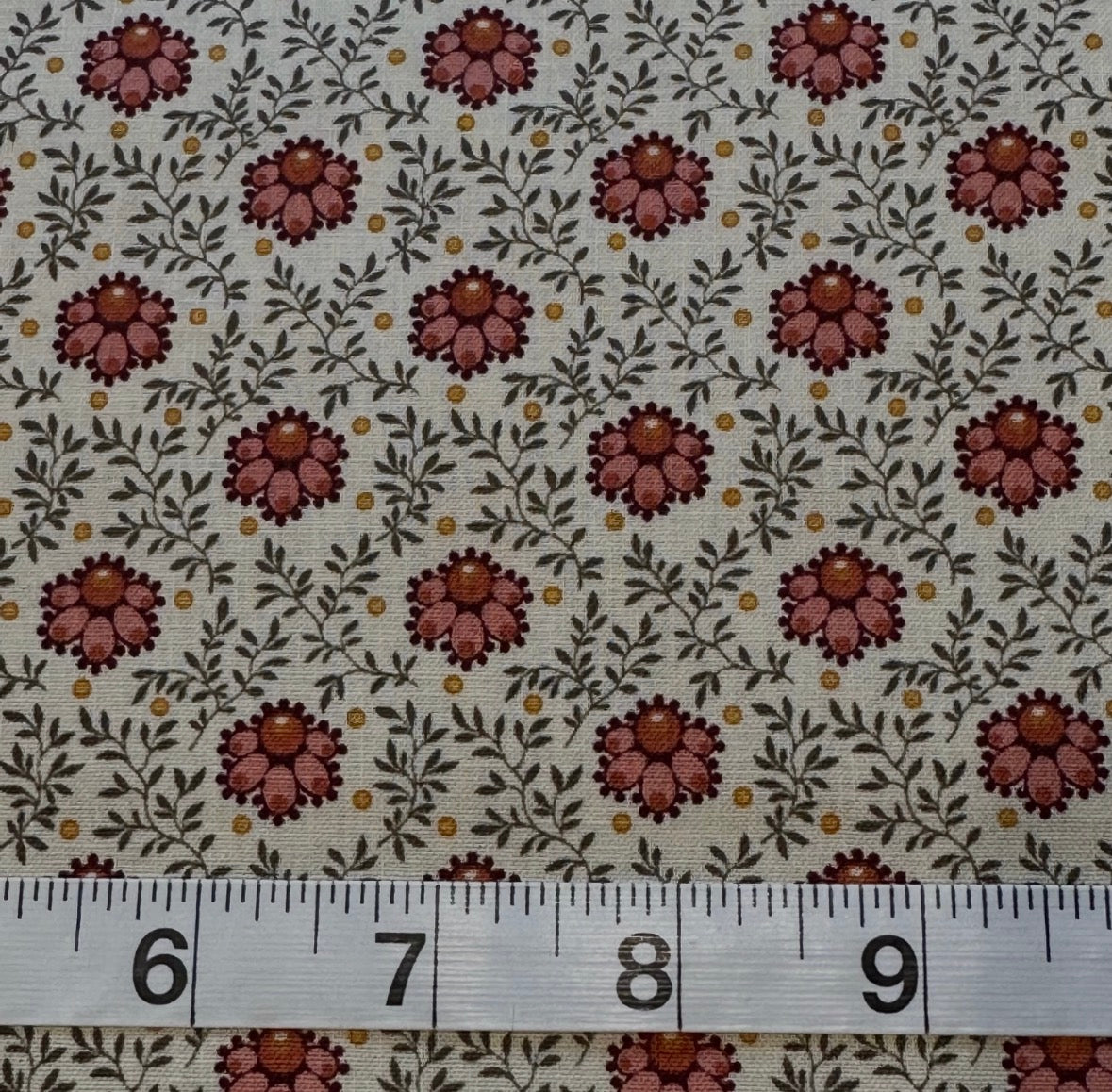 Fabric - Reproduction - (3575) Dusty Pink, Coral, Burgundy, Green with Gold Dot is backordered and will ship as soon as it is back in stock.