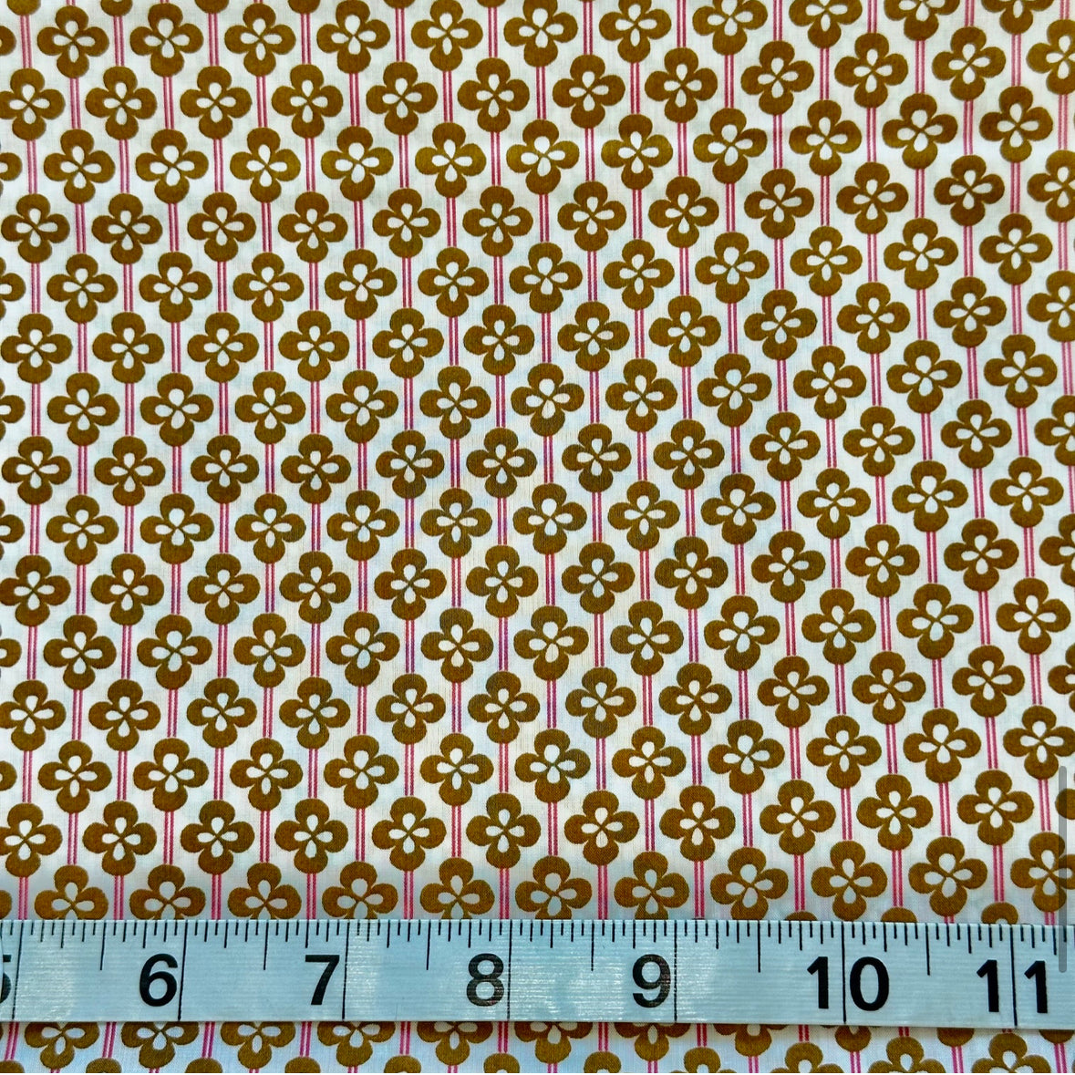 Fabric - Liberty - (3441) Toffee 4 Leaf Clover with Fine Hot Pink Stripe on Vanilla Background is backordered and will ship as soon as it is back in stock.