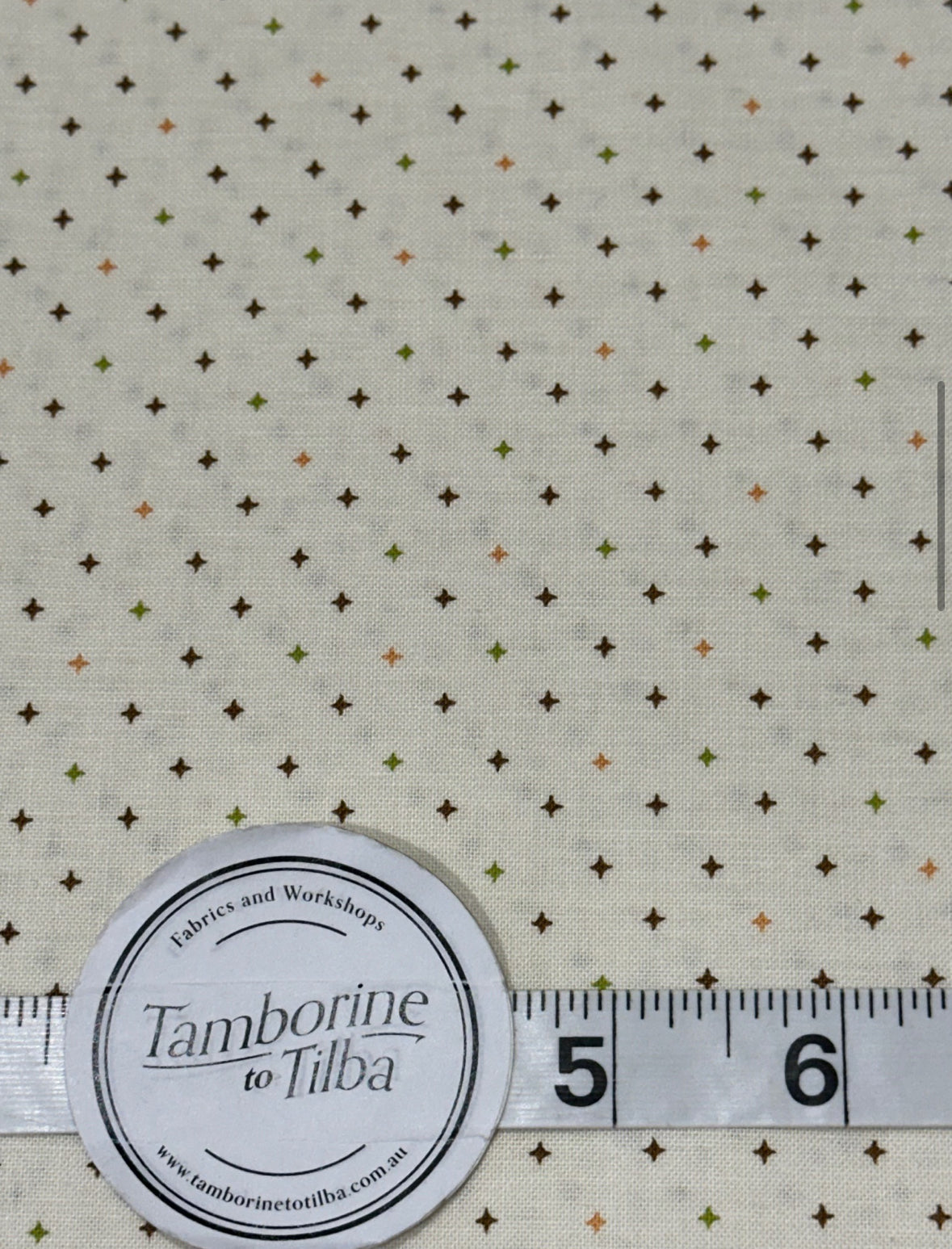 Fabric - Shirting - (3006) Tiny Stars in Pink, Green & Chocolate on Vanilla