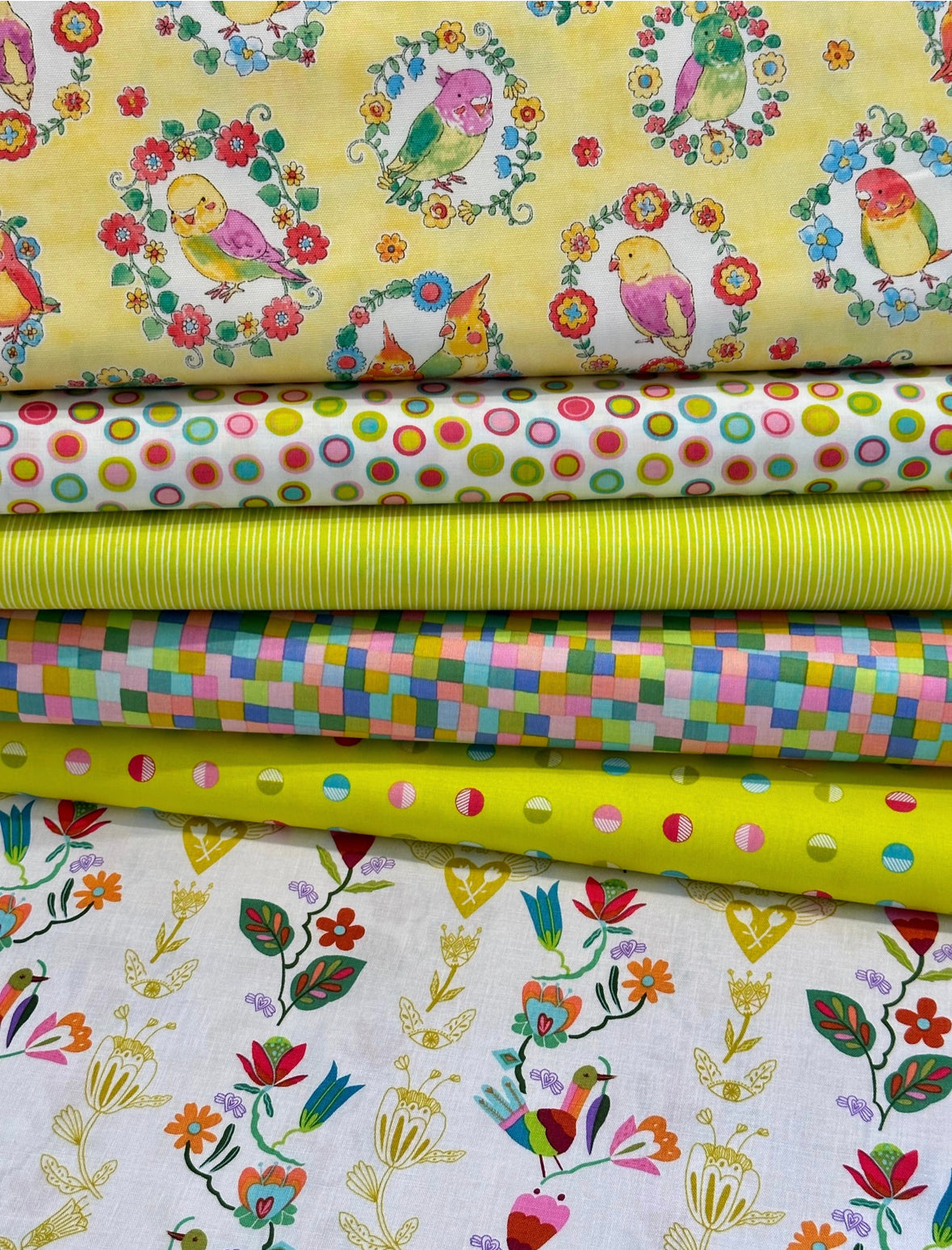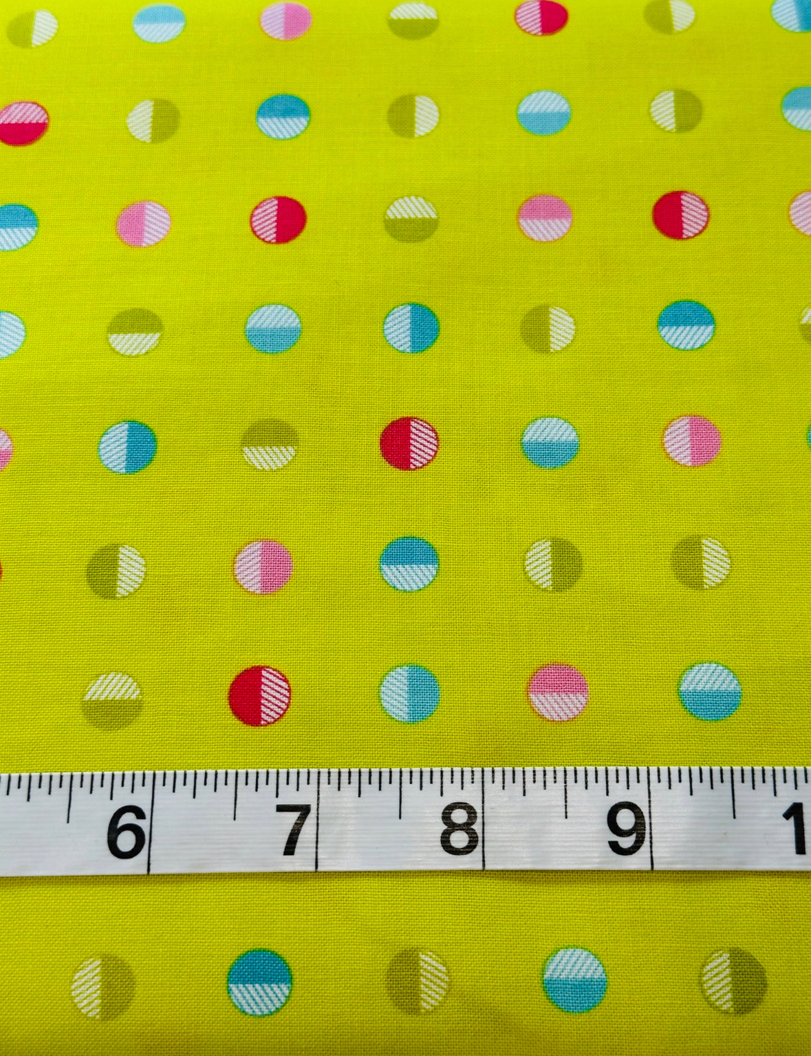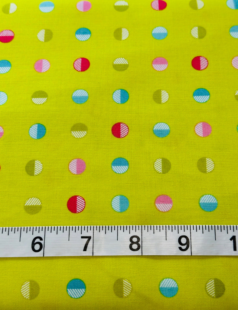 Fabric - Spot - (970) Multicoloured Spots on Chartreuse is backordered and will ship as soon as it is back in stock.